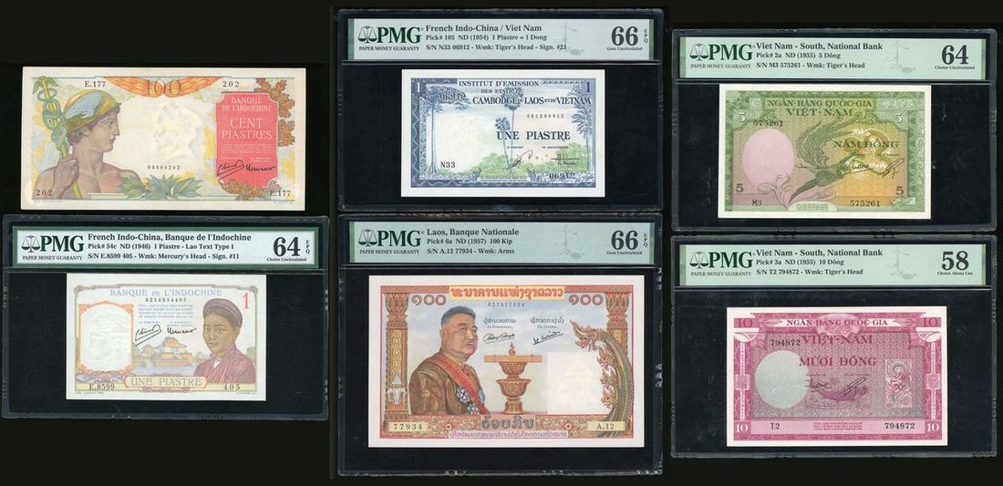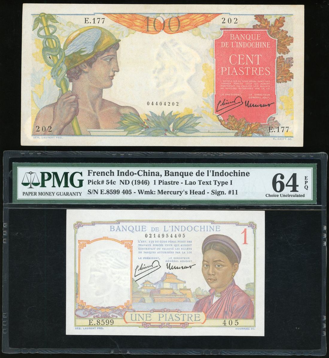 -French Indo China, 1 piastre (1946), 100 piastres (1947-54), 1 piastre (1954),