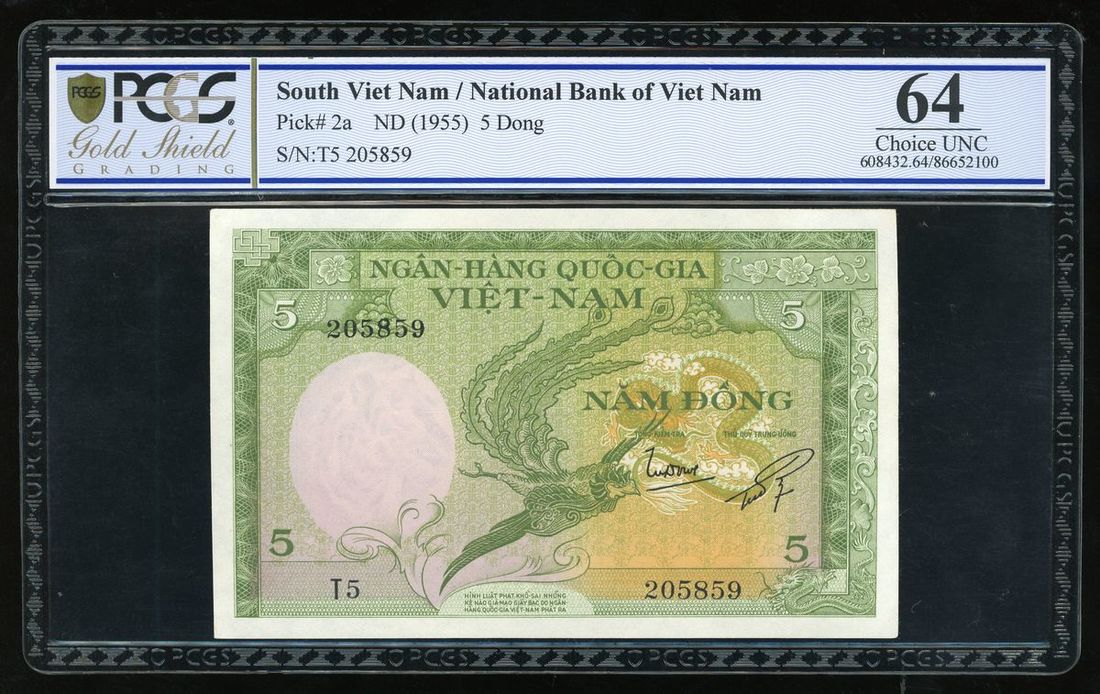 -Vietnam, 5 dong, ND (1955), PCGS 64
