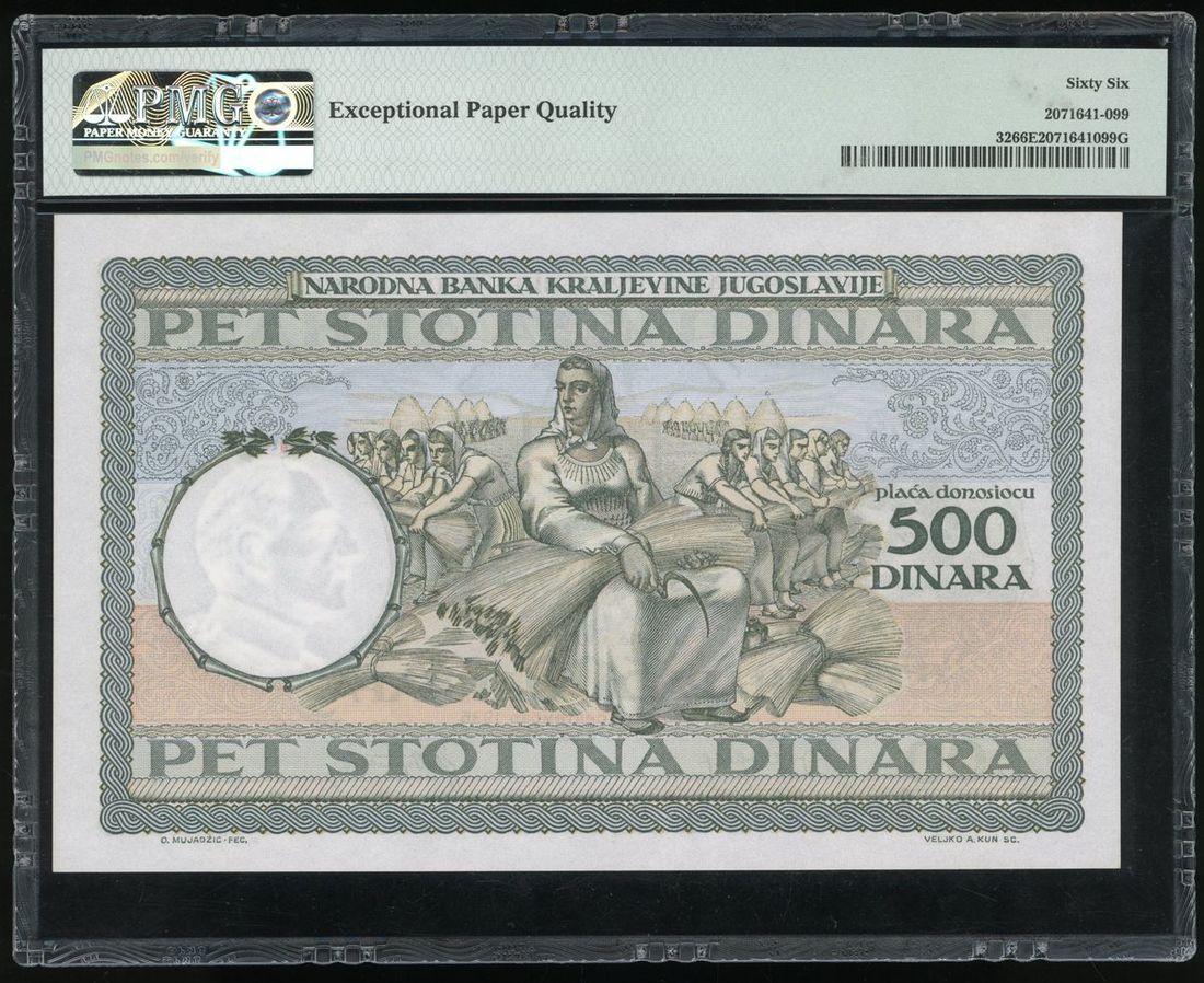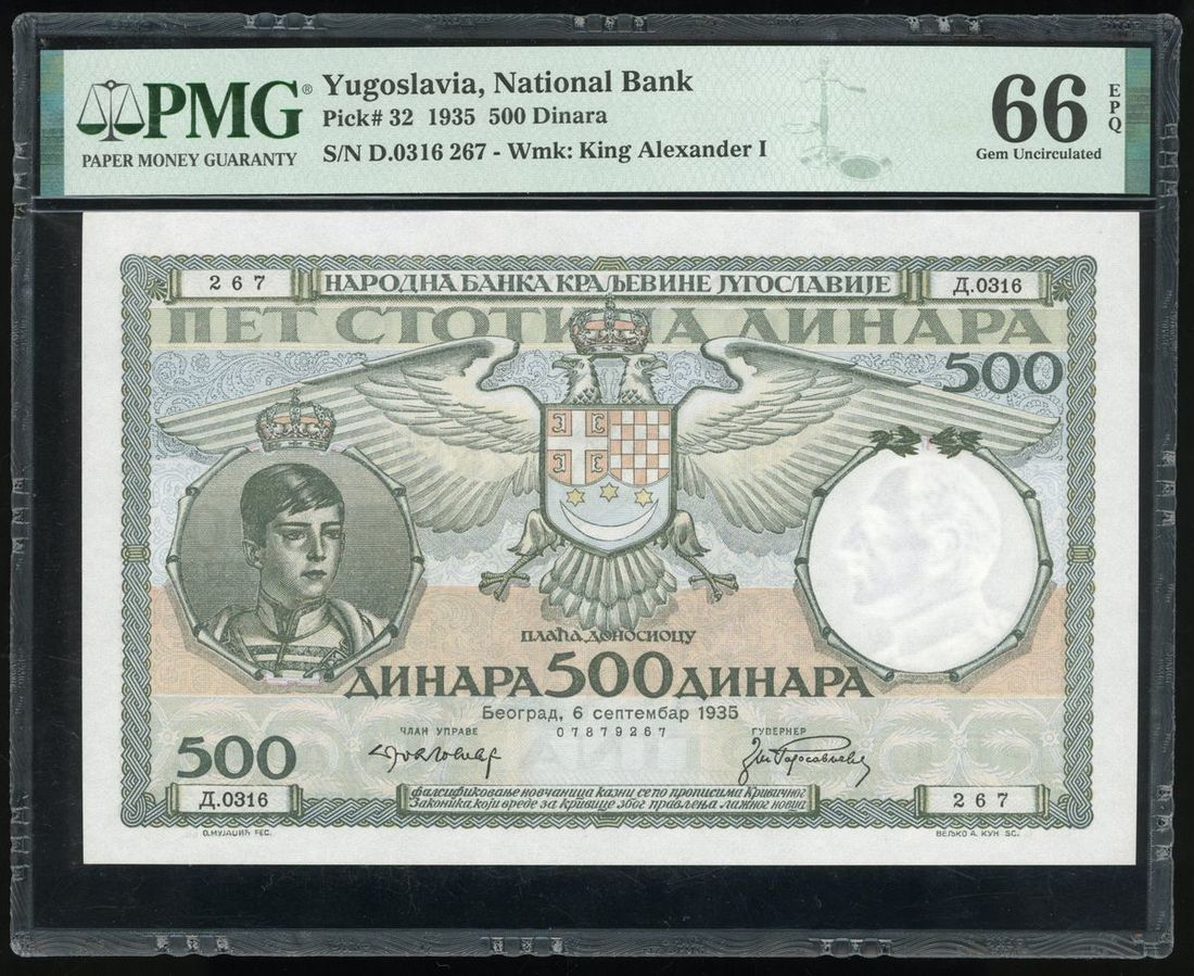 Yugoslavia, 500 dinara, 1935, serial number D.0316 267, (Pick 32), PMG 66EPQ