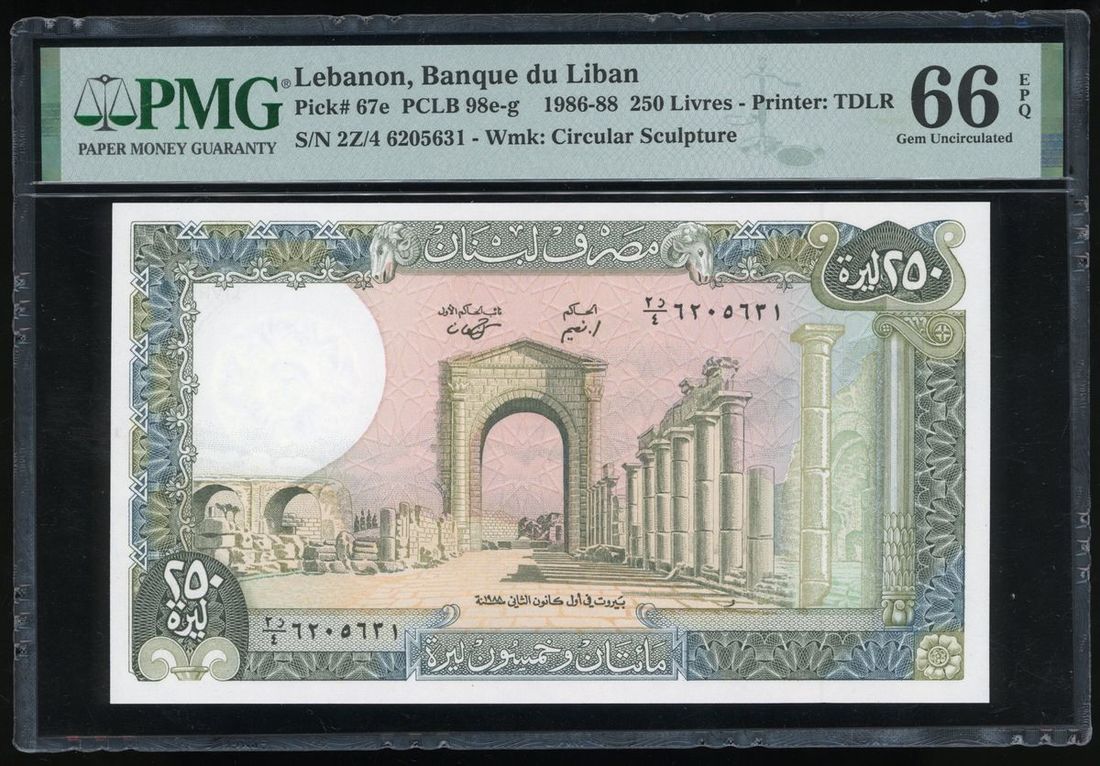 -Lebanon, 250 livres, 1988, (Pick 67e),