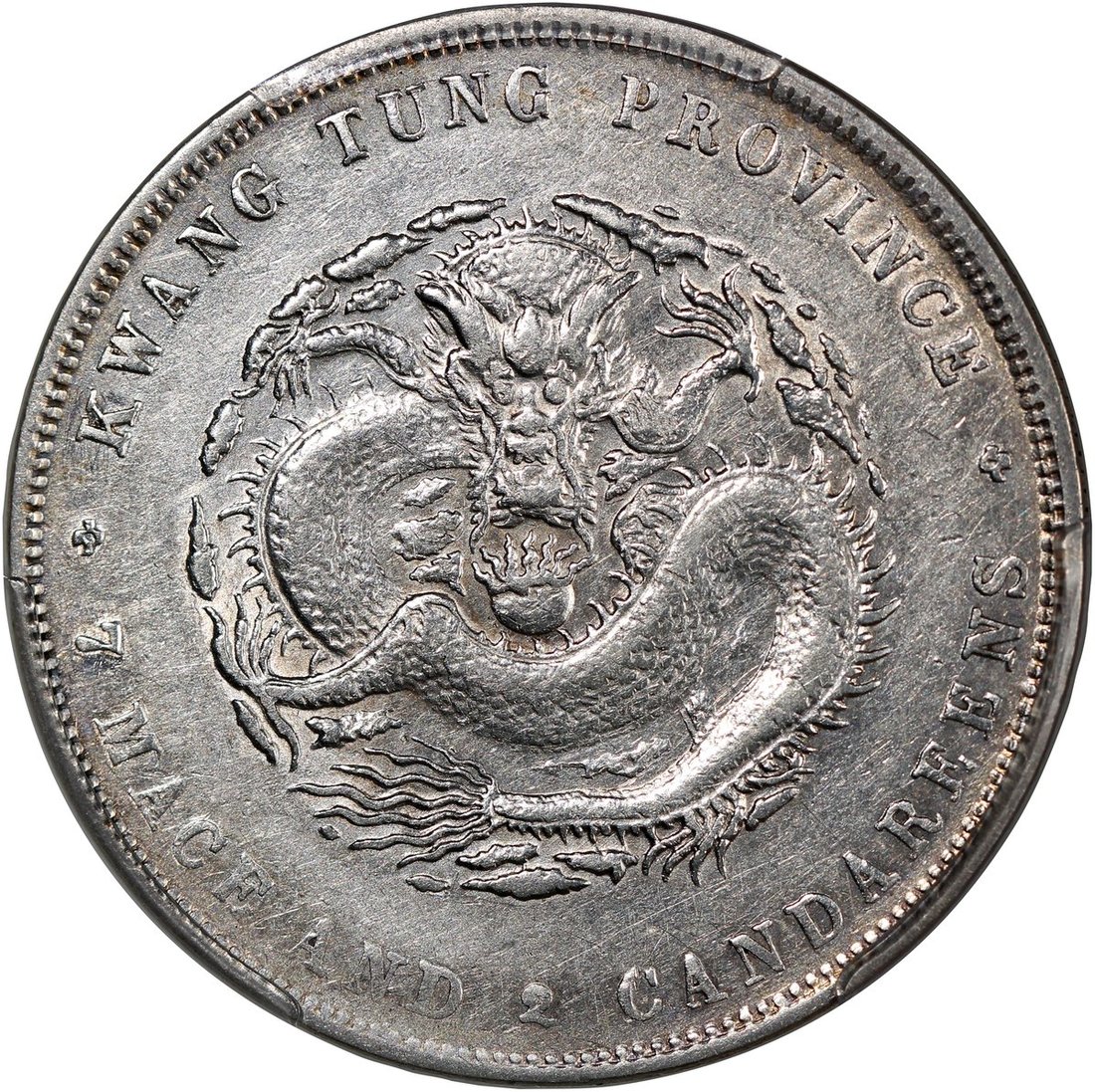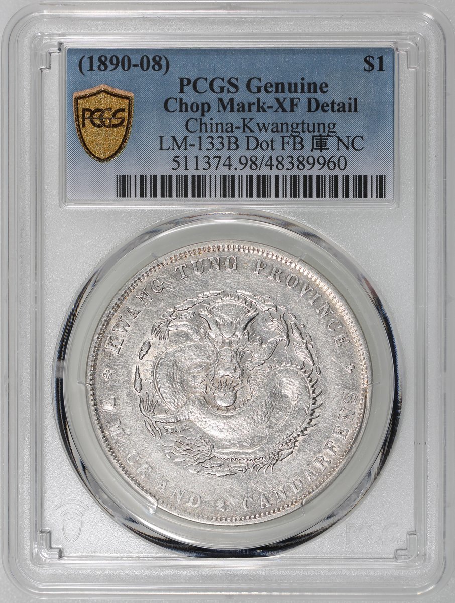 China, Qing Dynasty, Kwangtung Province, [PCGS XF Detail] silver dollar, ND (1890-1908), 'Guangxu Yuan Bao', Heaton mint, dot on fireball on obverse, Chinese character 'Ku' on reverse not connected variety, (LM-133B, Y-26), PCGS XF Detail (Chop Mark), cert. #48389960, the noted chop mark is on reverse