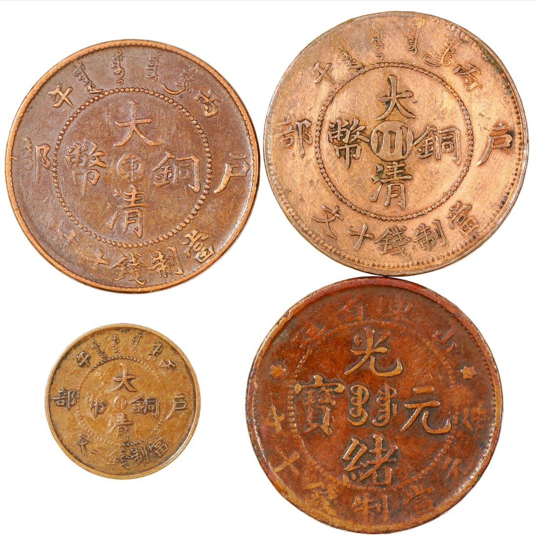 China, Qing Dynasty, a group of 4x copper issues, including, Shangtung Province,