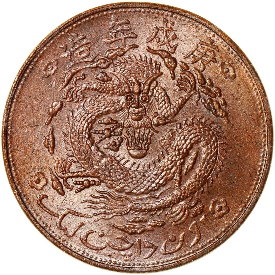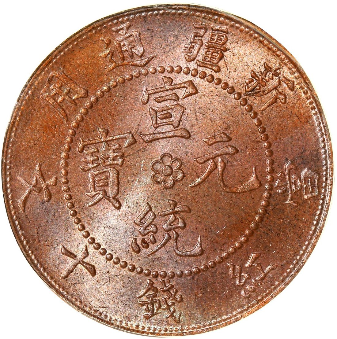 China, Qing Dynasty, Sinkiang Province, copper 10 cash fantasy restrike, Gengxu year (1910), 'Xuan Tong Yuan Bao', (Y-2A), Wende MS64RB