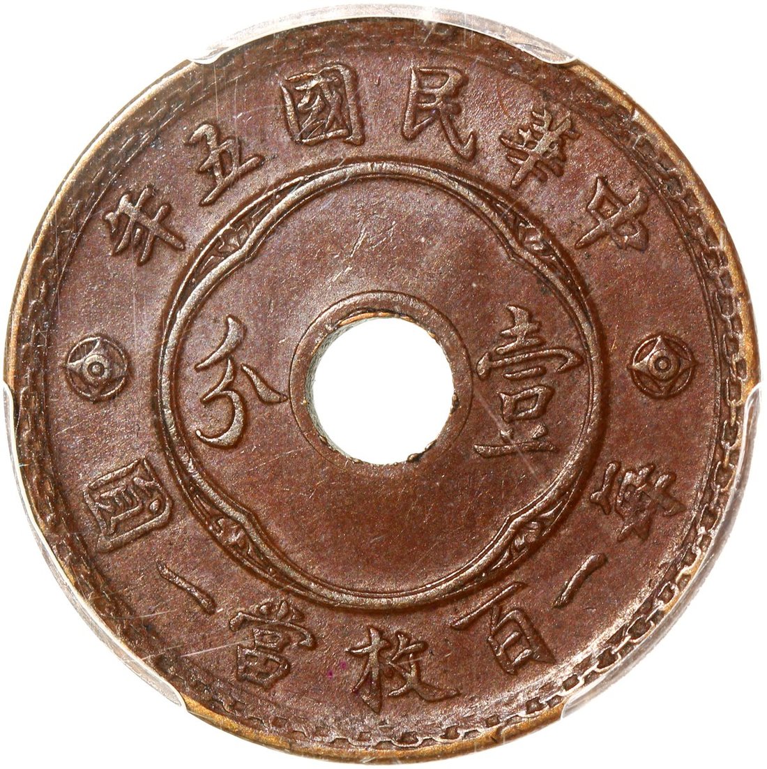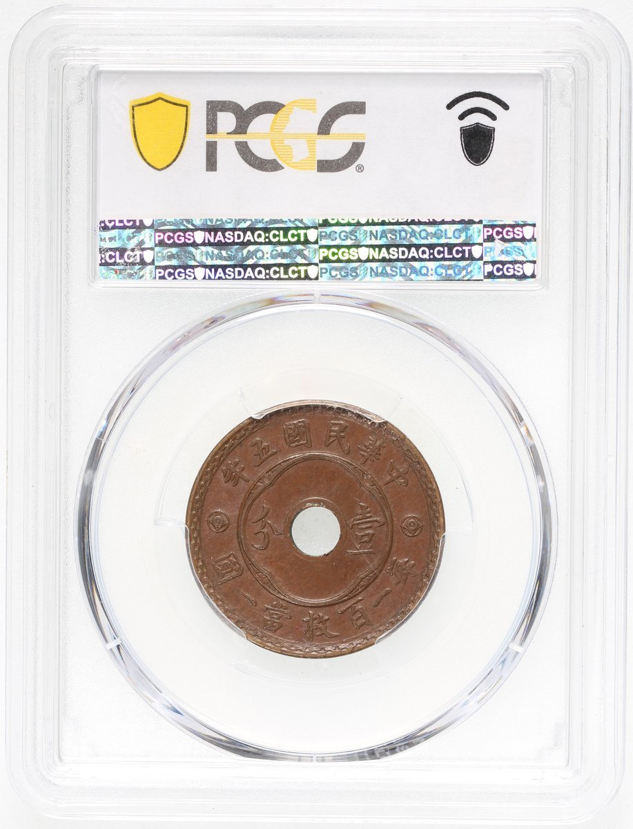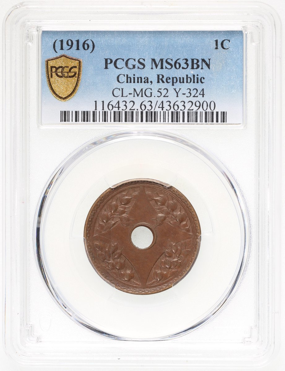China, Republic, [PCGS MS63BN] copper 1 cent, Year 5 (1916), (CL-MG.52, Y-324), cert. #43632900