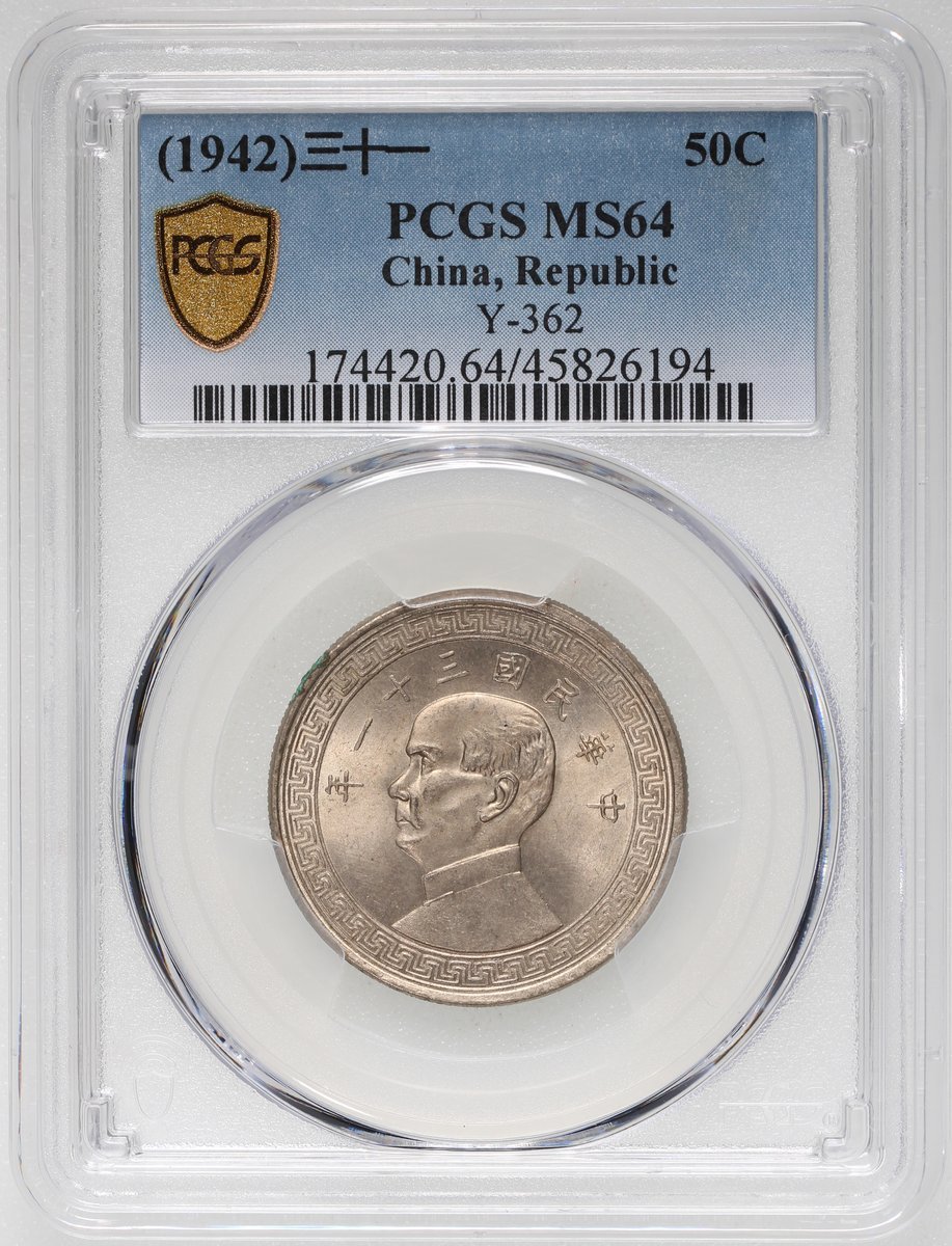 China, Republic, [PCGS MS64] nickel 50 cents, Year 31 (1942), (Y-362), cert. #45826194.