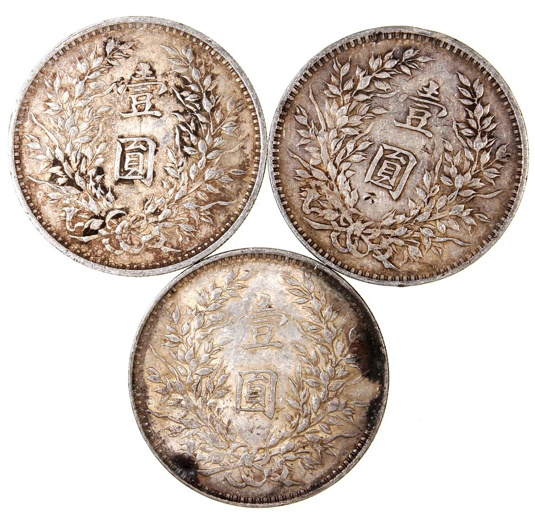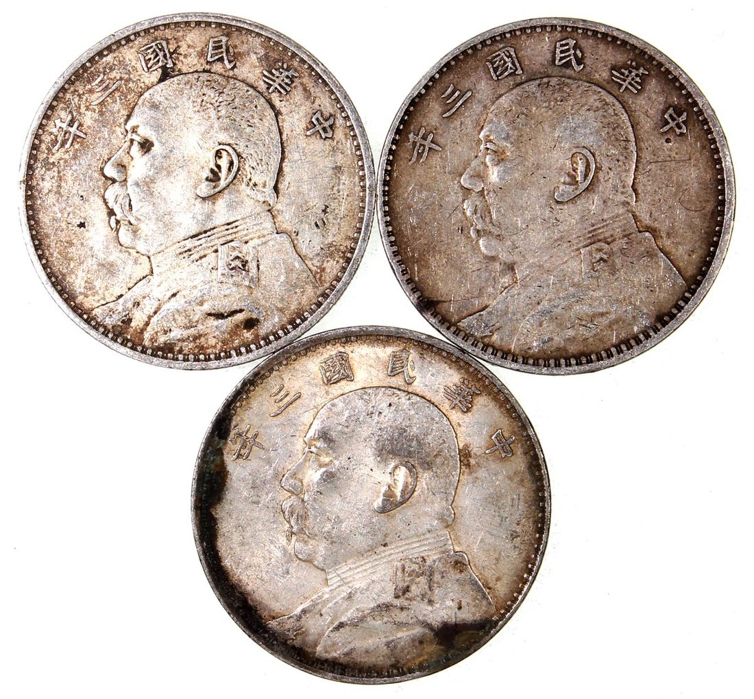 China, Republic, a group of 3x 'Fatman' dollar, Year 3 (1914), 26.68g, 26.72g, 26.88g,