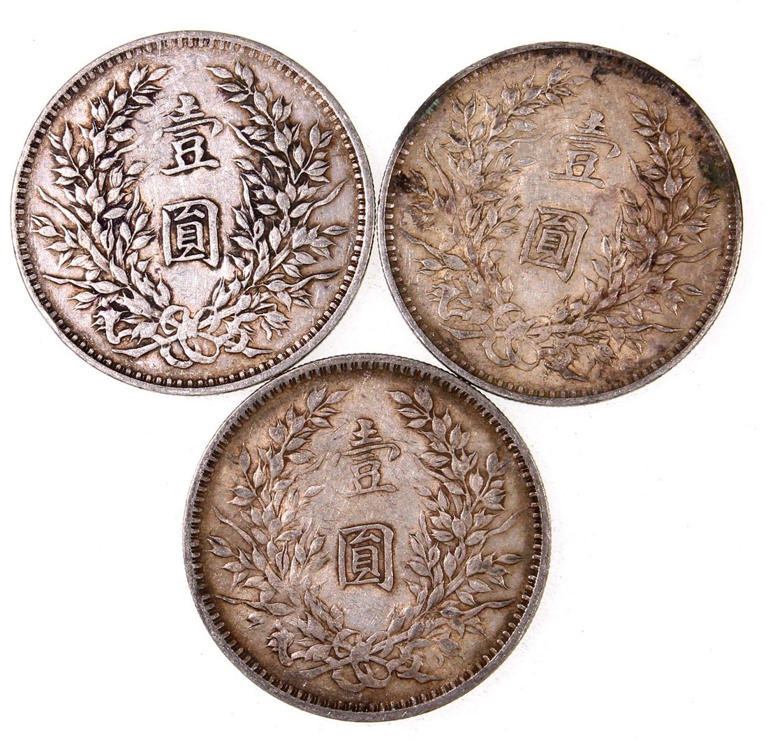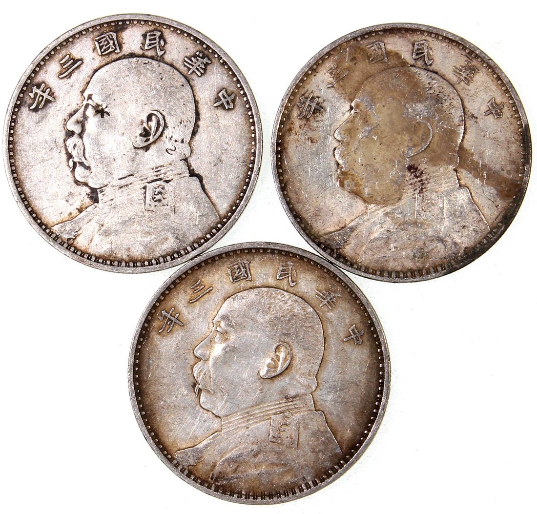China, Republic, a group of 3x 'Fatman' dollar, Year 3 (1914), 26.86g, 26.90g, 26.70g,