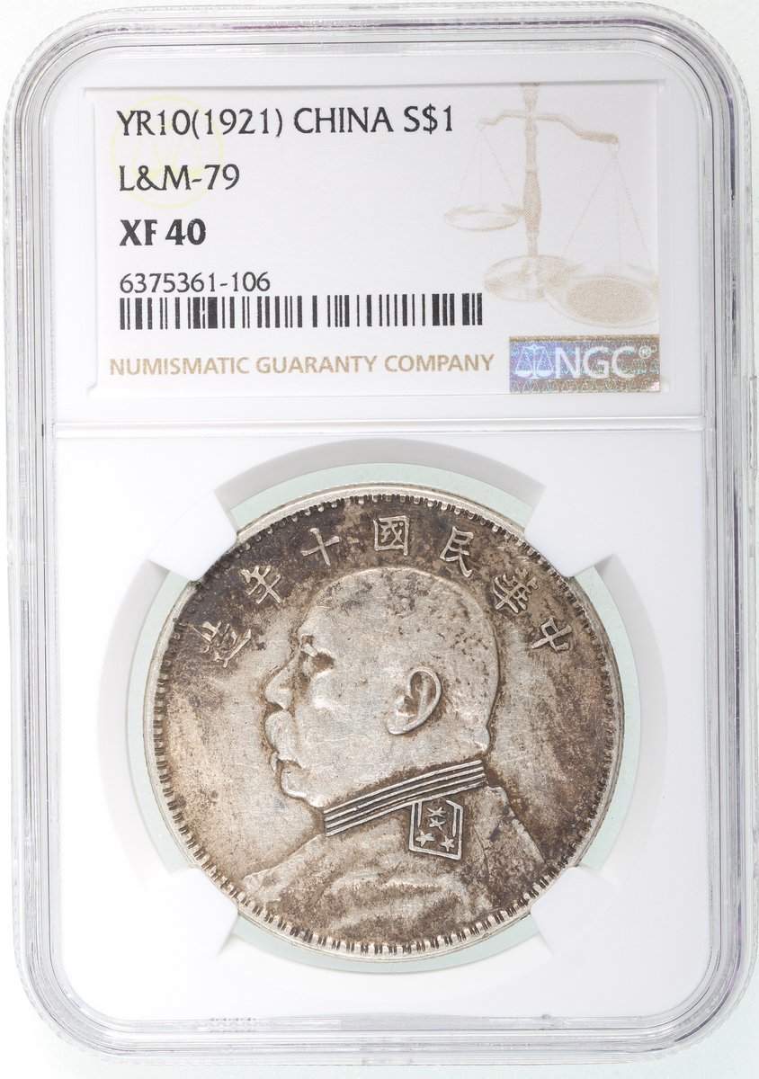 China, Republic, [NGC XF45] silver dollar, Year 10 (1921), 'with open 'Zhong' character', #6375361-106