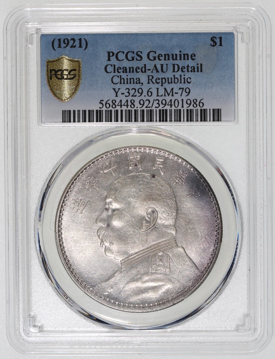 民國十年袁世凱像壹圓銀幣,T點年版,PCGS AU Detail,有清洗