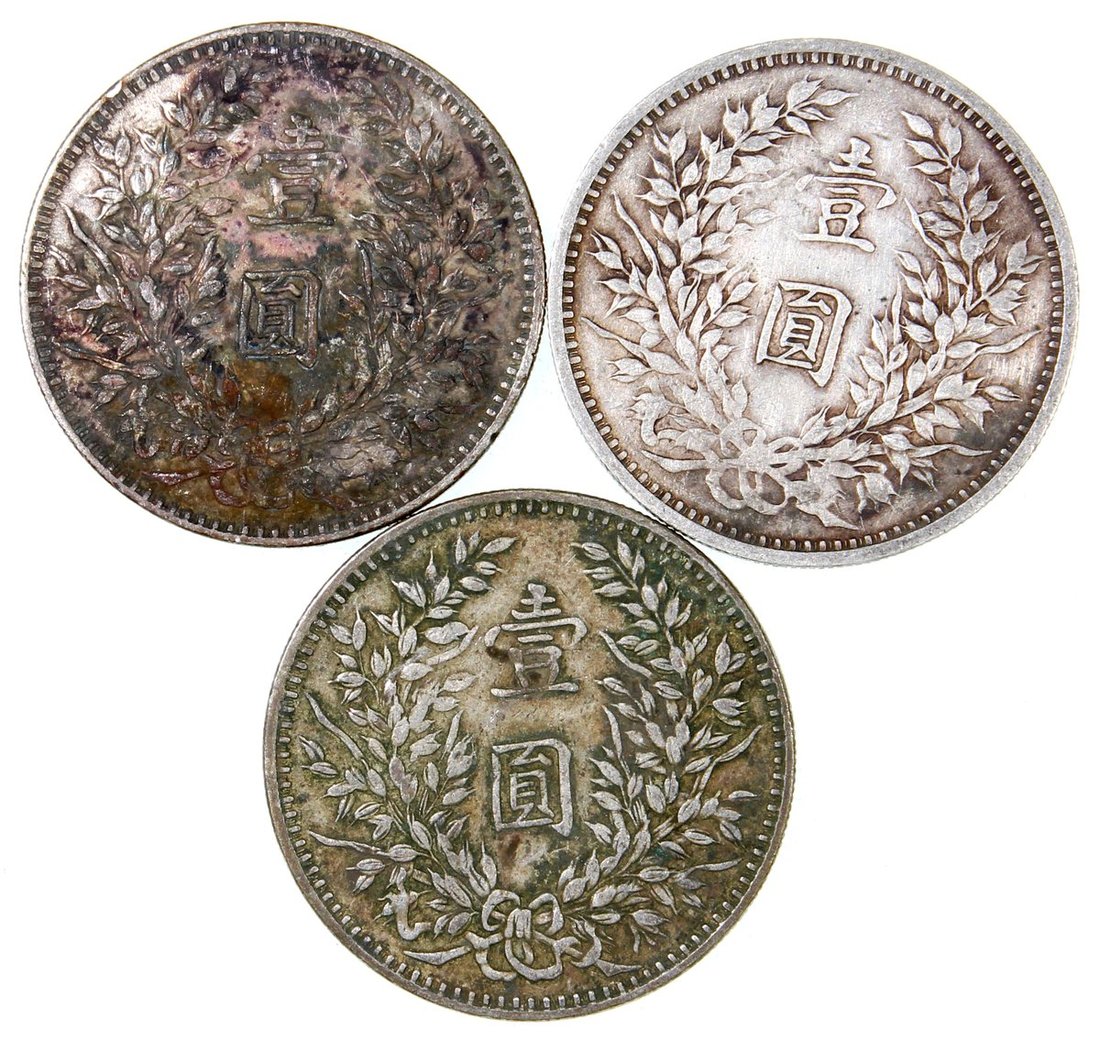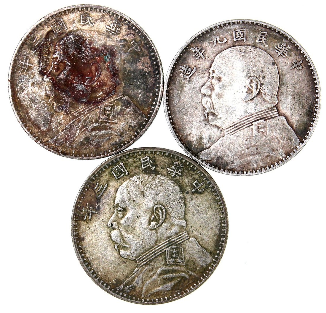 China, Republic, a group of 3x 'Fatman' dollar, Year 3 and Year 9 (1914 / 1920), 26.77g, 26.38g, 27.03g,