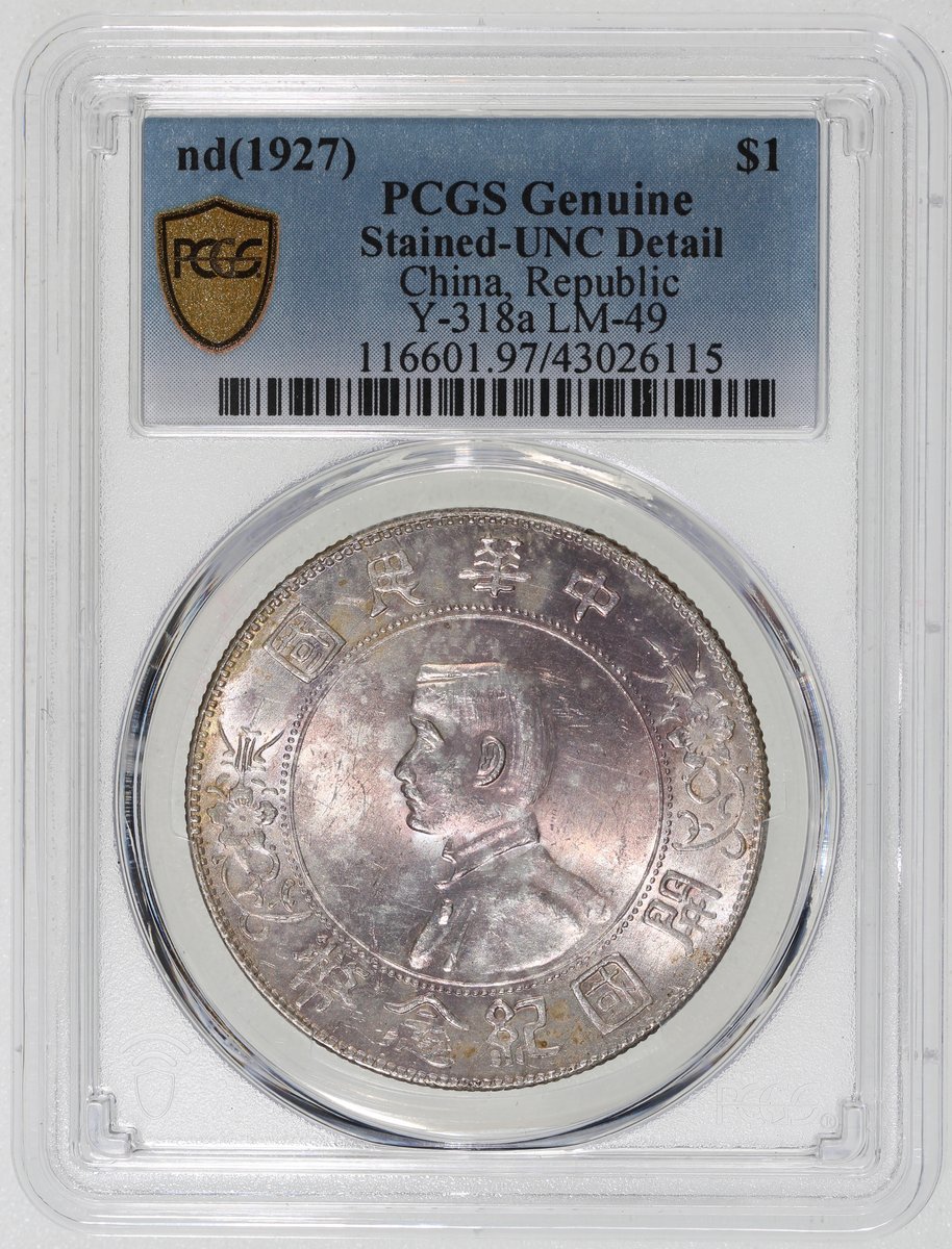 China, Republic, [PCGS UNC Detail] silver dollar, ND (1927), 'memento', (LM-49), stained. #43026115. Still with original luster