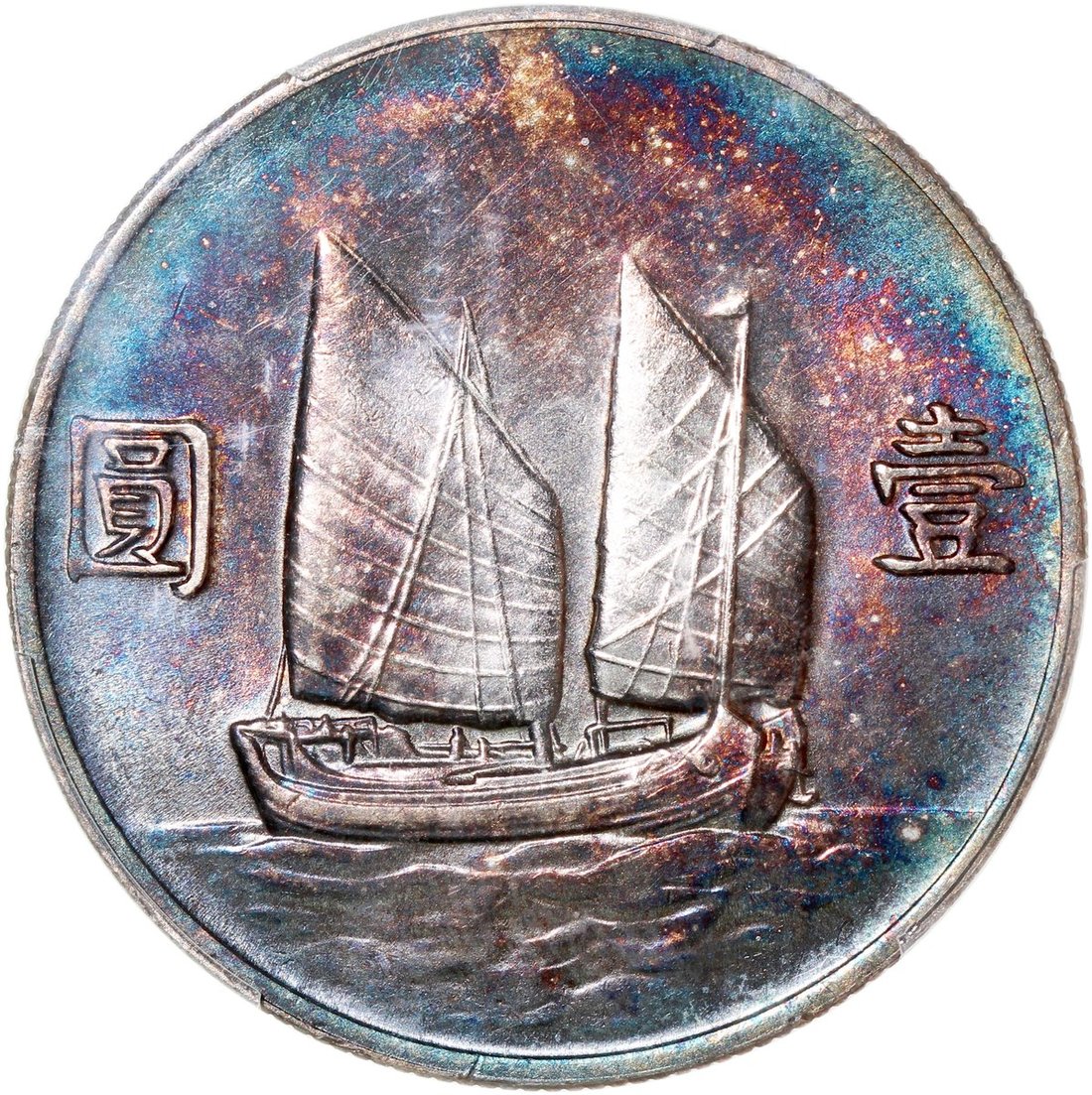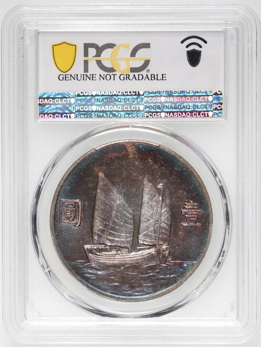 民國二十二年孫像船洋壹圓,PCGS AU Detail,有清洗,深色包漿