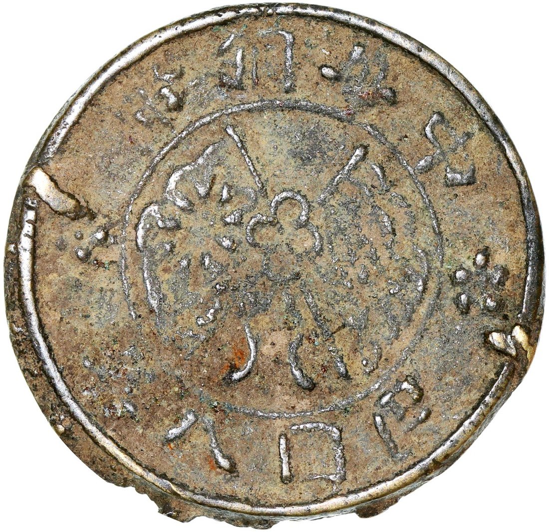 China, Republic, Kansu Province, cast brass 20 cash, Year 8 (1919), Warlord issue, Lanchow mint, crossed flags on obverse, value in grain sprays on reverse, weighs 8.0g, Very Fine for issue, rough surfaces as to be expected of cast coinage debased with sand