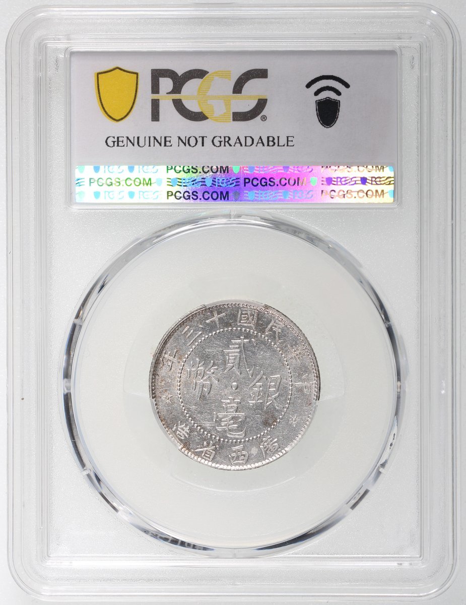 China, Republic, Kwangsi Province, [PCGS AU Detail] a pair of silver 20 cents, Year 13 (1924) and Year 14 (1925), Year 13 with dot at centre on reverse type, (LM-169, K-749), (LM-173, K-751), Edge Damage and Cleaned, Cert. #50661496-97 (2)