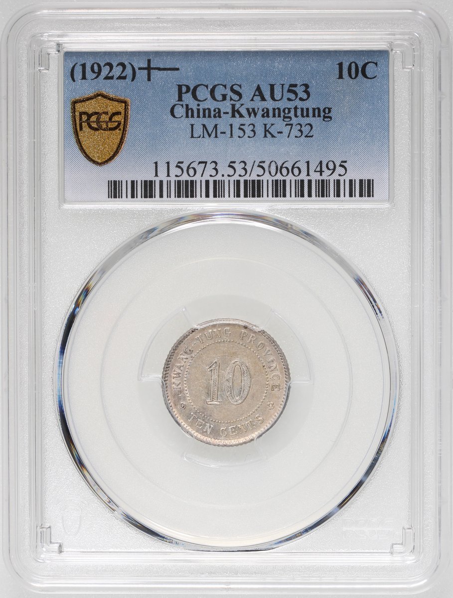 China, Republic, Kwangtung Province, [PCGS AU53] silver 10 cents, Year 11 (1922), (LM-153, K-732), Cert. #50661495