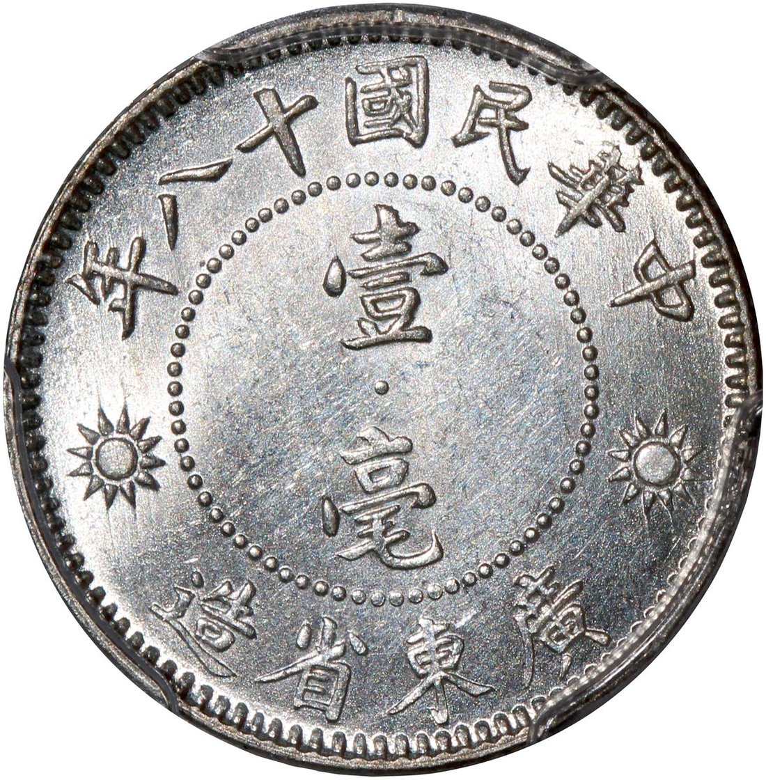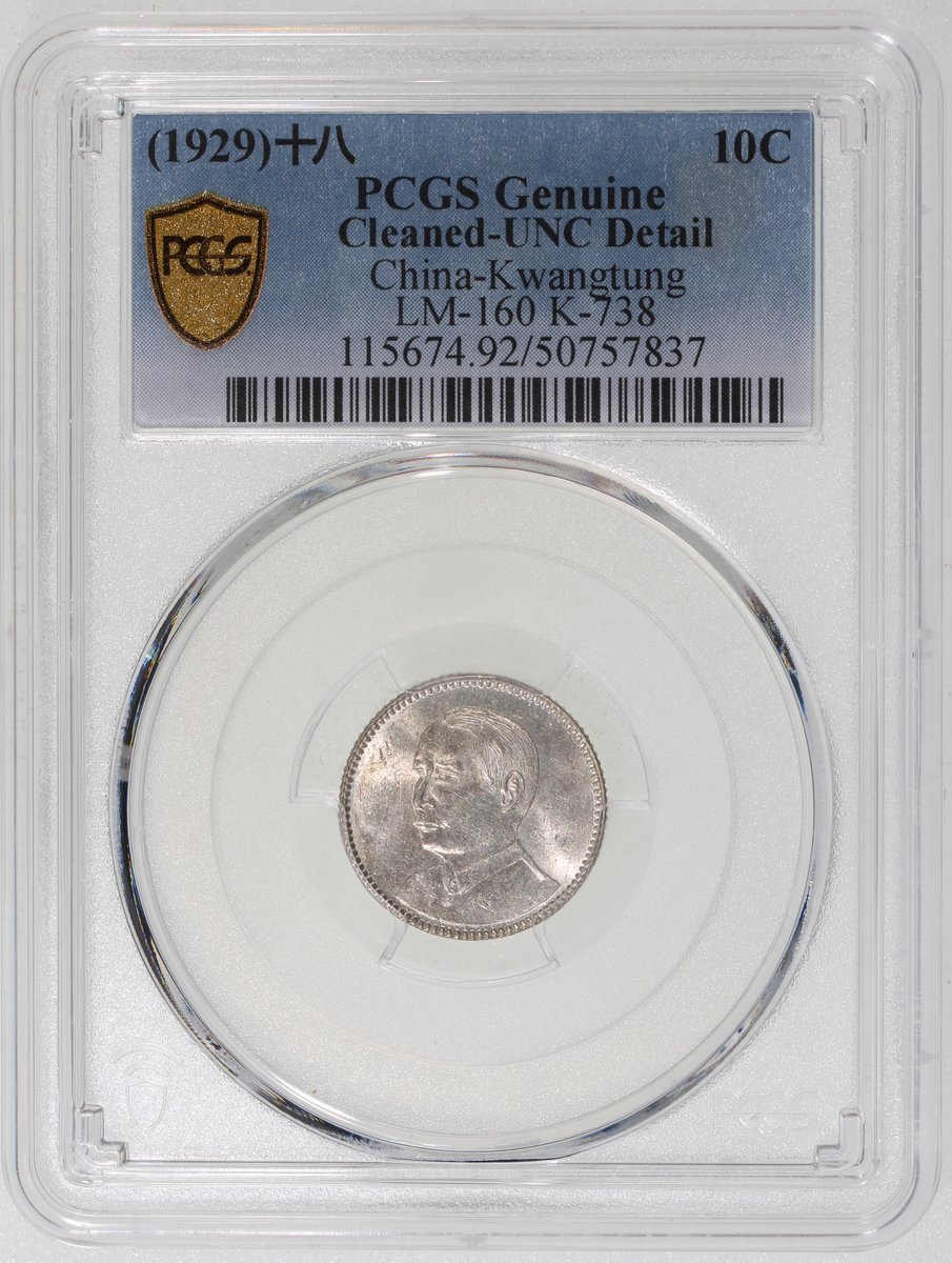 China, Qing Dynasty, Kwangtung Province, [PCGS UNC Detail] silver 10 cents, Year 18 (1929), #50757837
