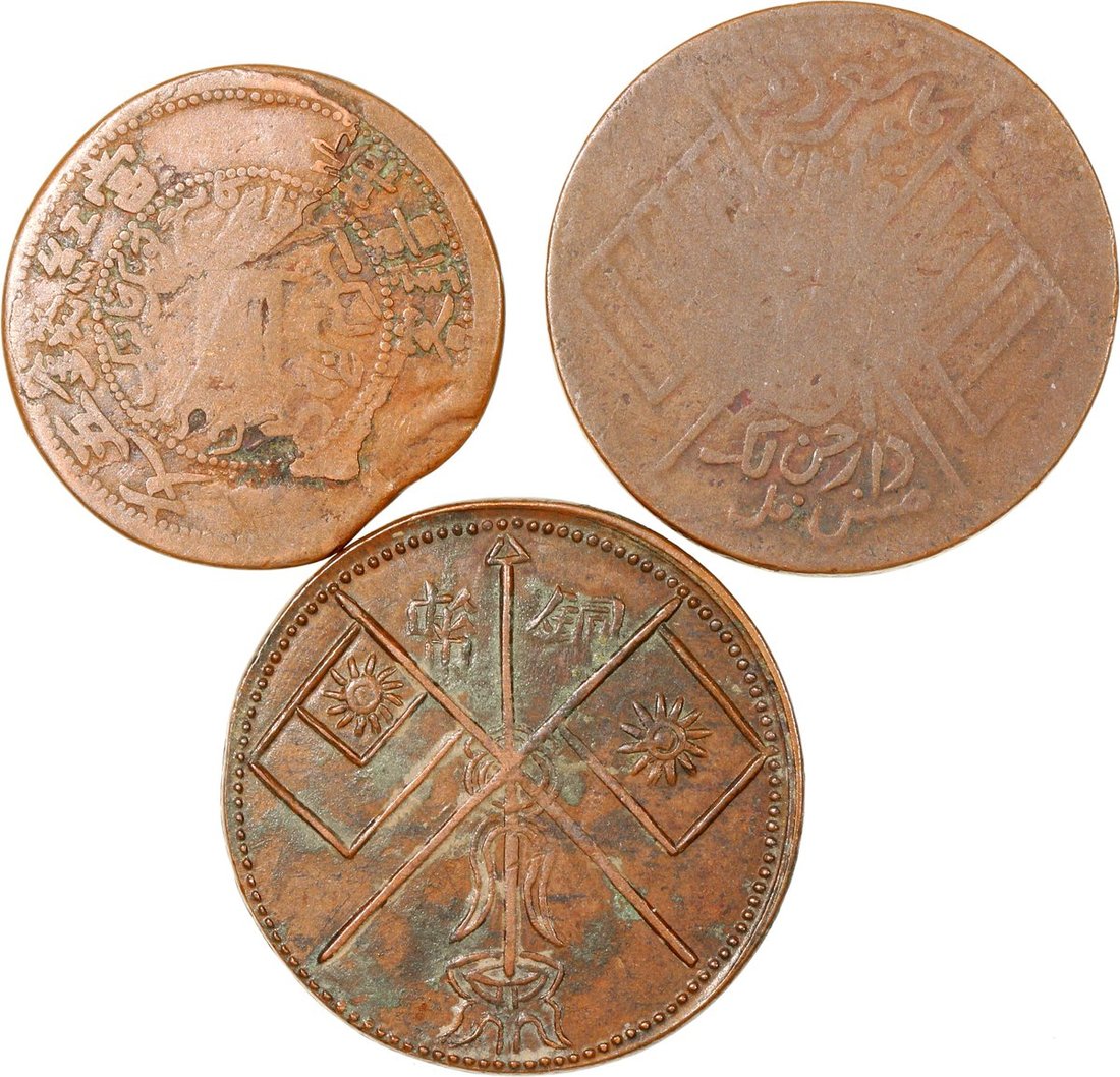 China, Republic, Sinkiang, a group of 3x copper coins, including, -5 cash, Year 1 (1912), (Y-A36),