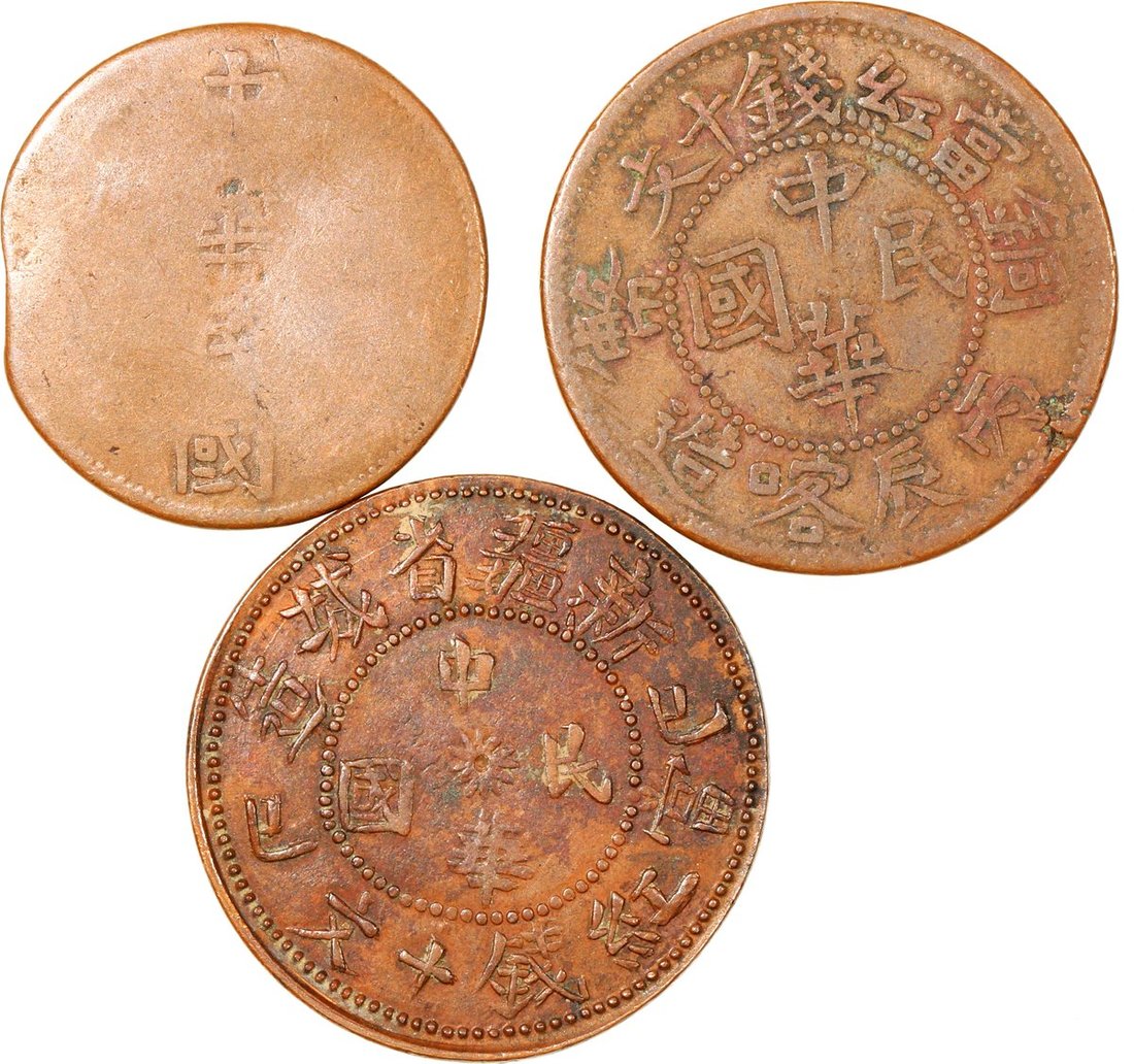 -10 cash, 1929, (Y-40.1), 5 cash, damage, good. 10 cash fine and very fine respectively (3)