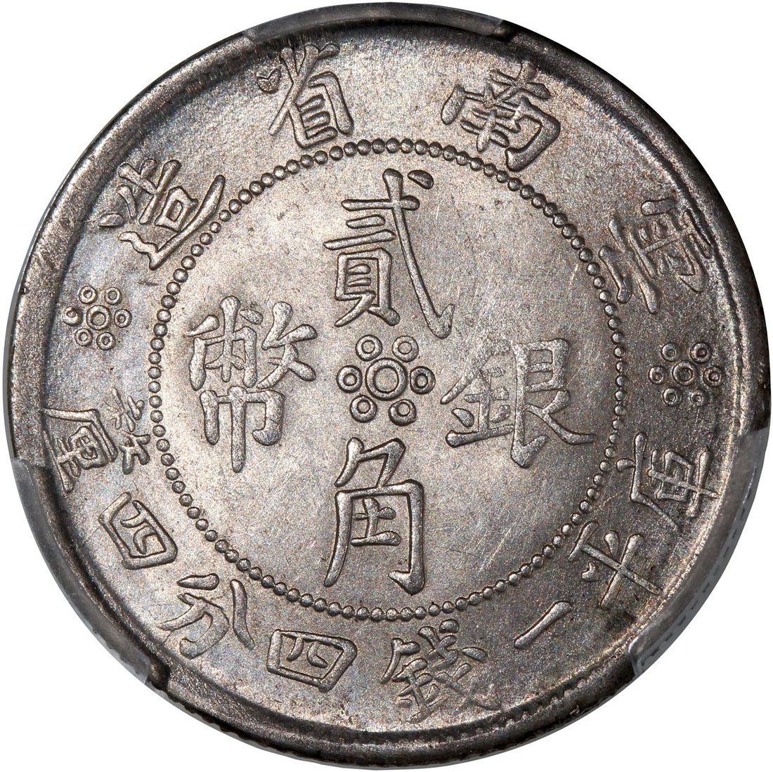 民國二十一年雲南省造雙旗二毫,PCGS MS63