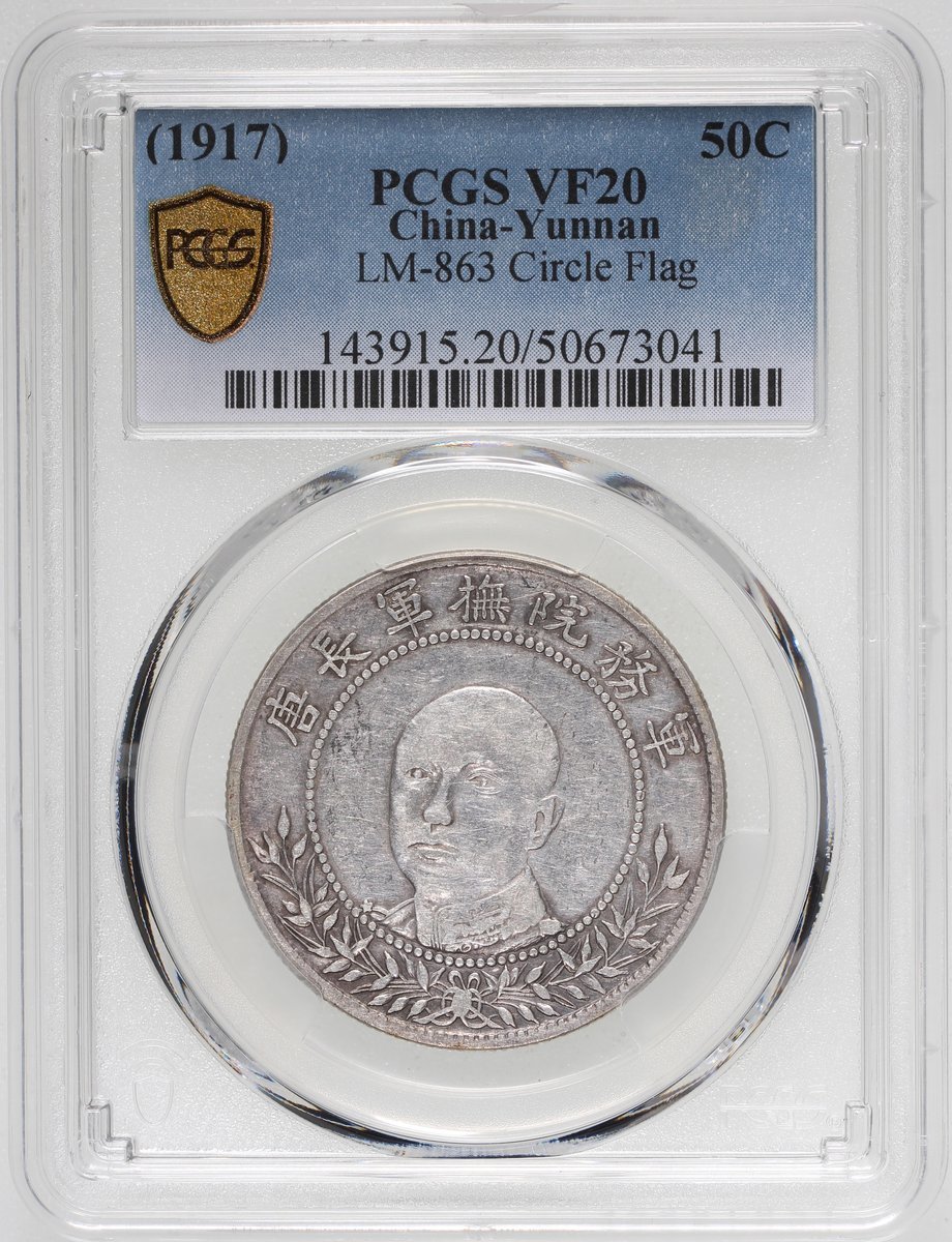 China, Republic, Yunnan Province, [PCGS VF20] silver 50 cents, ND (1917), three quarter profile of Tang Ji Yao, circle at center of left flag variety, (LM-863, Y-479.1), Cert. #50673041