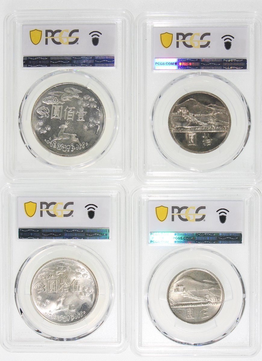 台灣孫中山先生百年誕辰紀念幣一組4枚,包括5元,10元,50元及100元,PCGS MS64-65