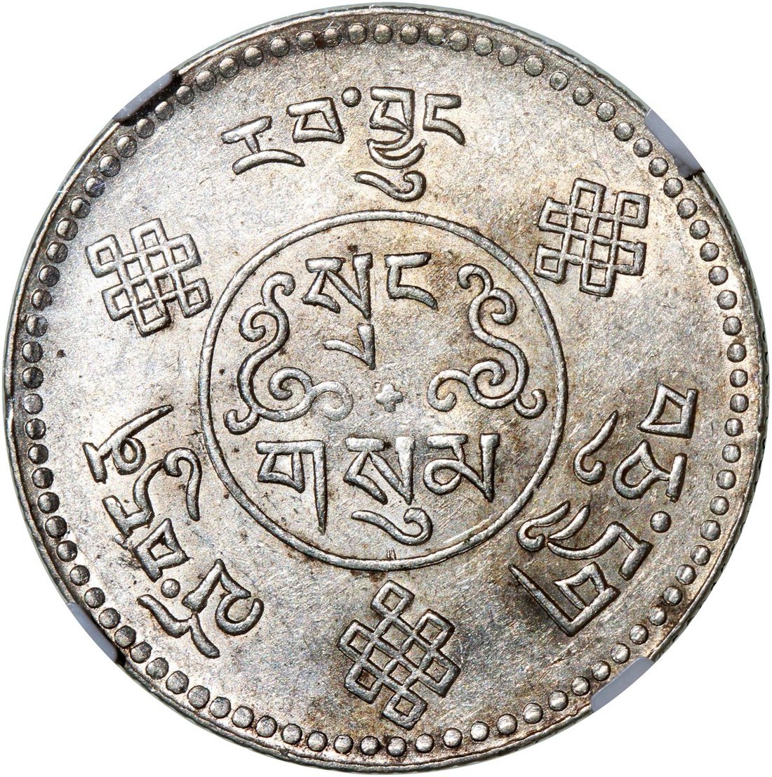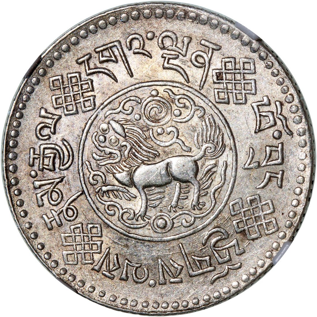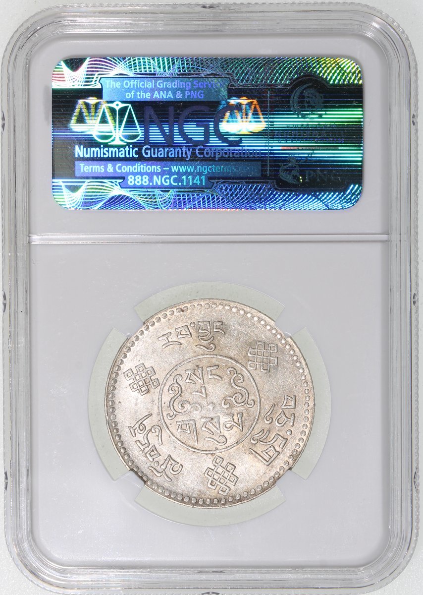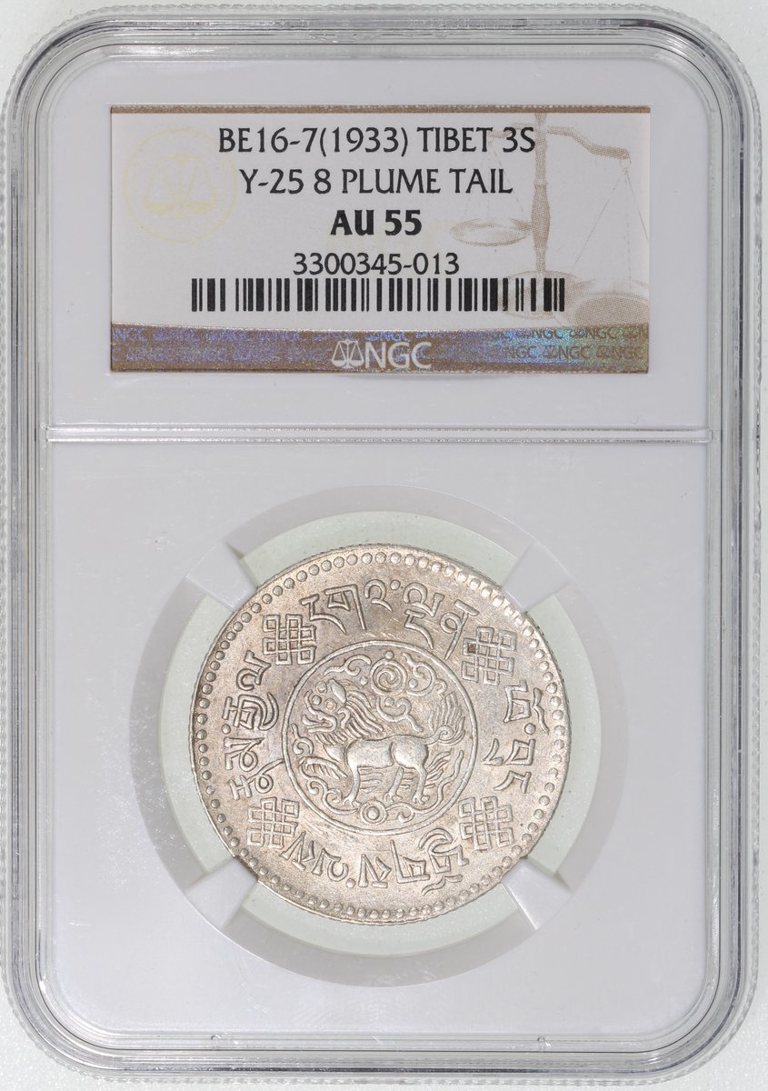 China, Tibet, [NGC AU55] silver 3 srang, BE16-7 (1933), '8 tails' type, (Y-25), #3300345-013