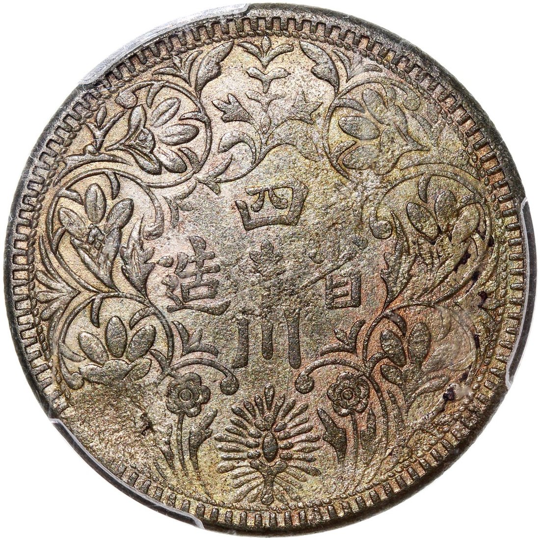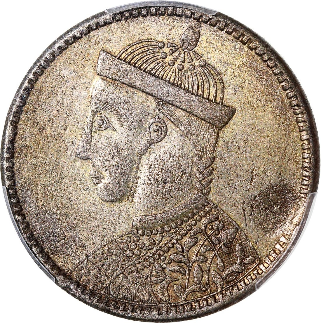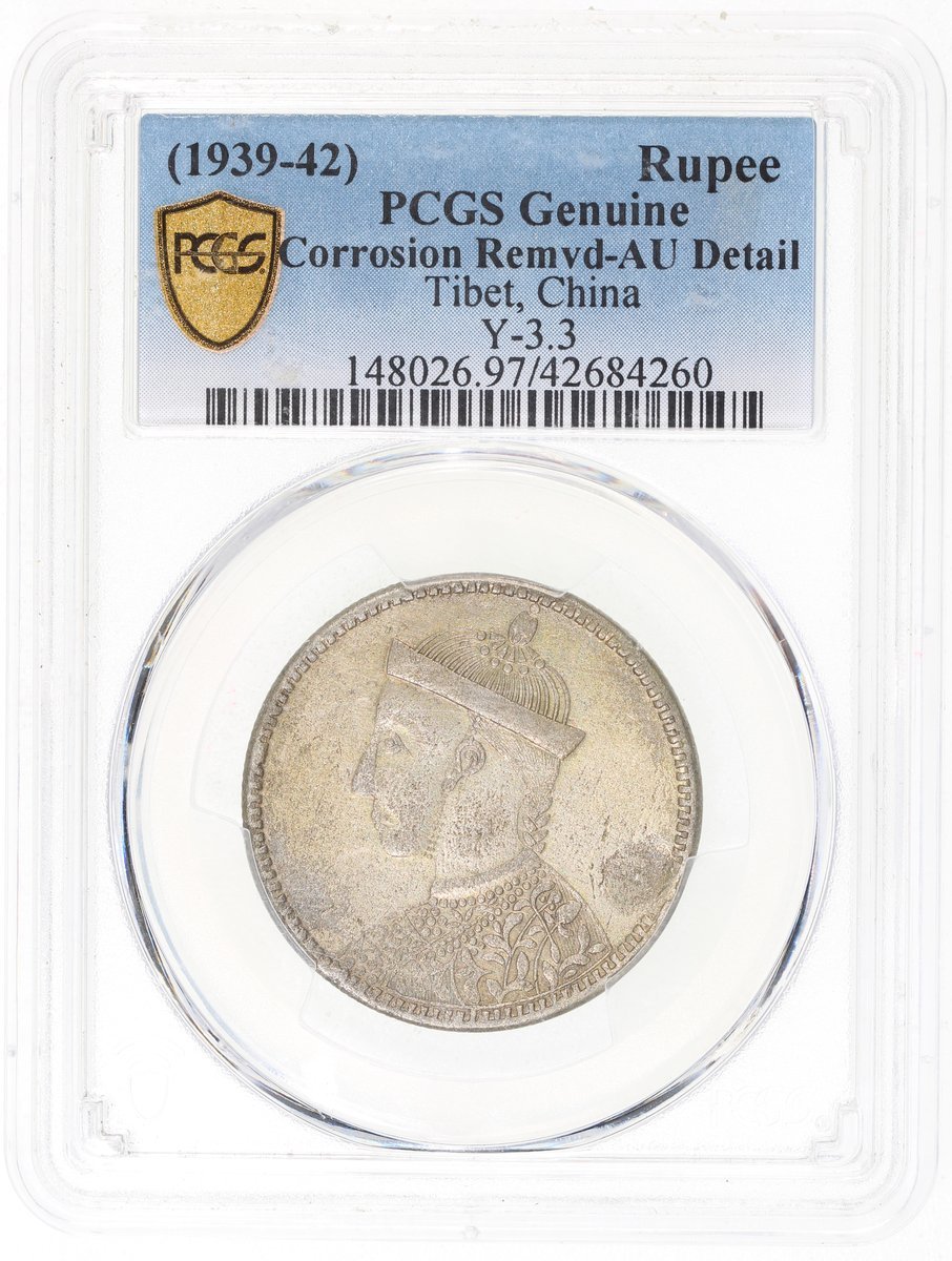 China, Tibet, [PCGS AU Detail] silver Szechuan rupees, 1939-42, (Y-3.3), corrosion removed. #42684260. Darker yellow tone with some underlying orange hues.