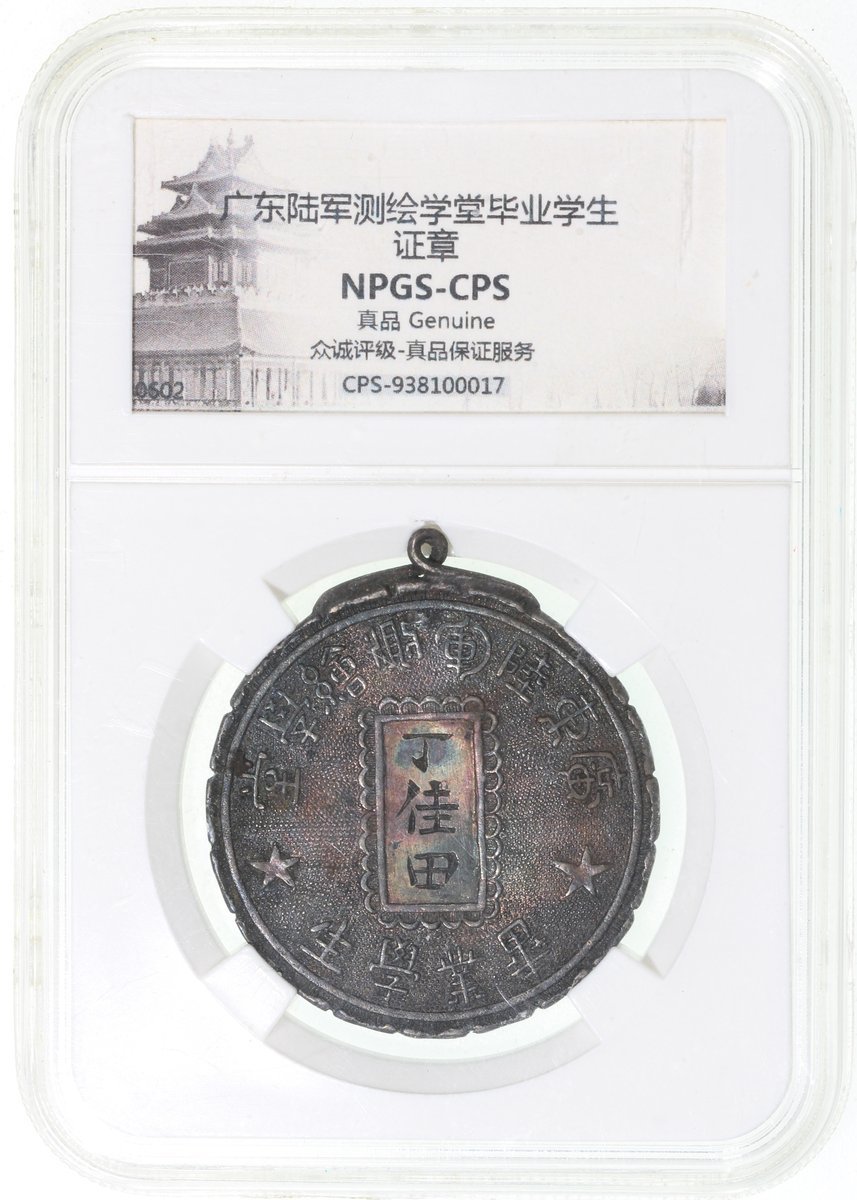 1906-1911清代廣東陸軍測繪學堂畢業學生證章,NPGS Genuine,包漿均勻,味道深邃