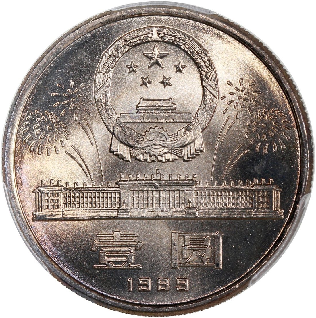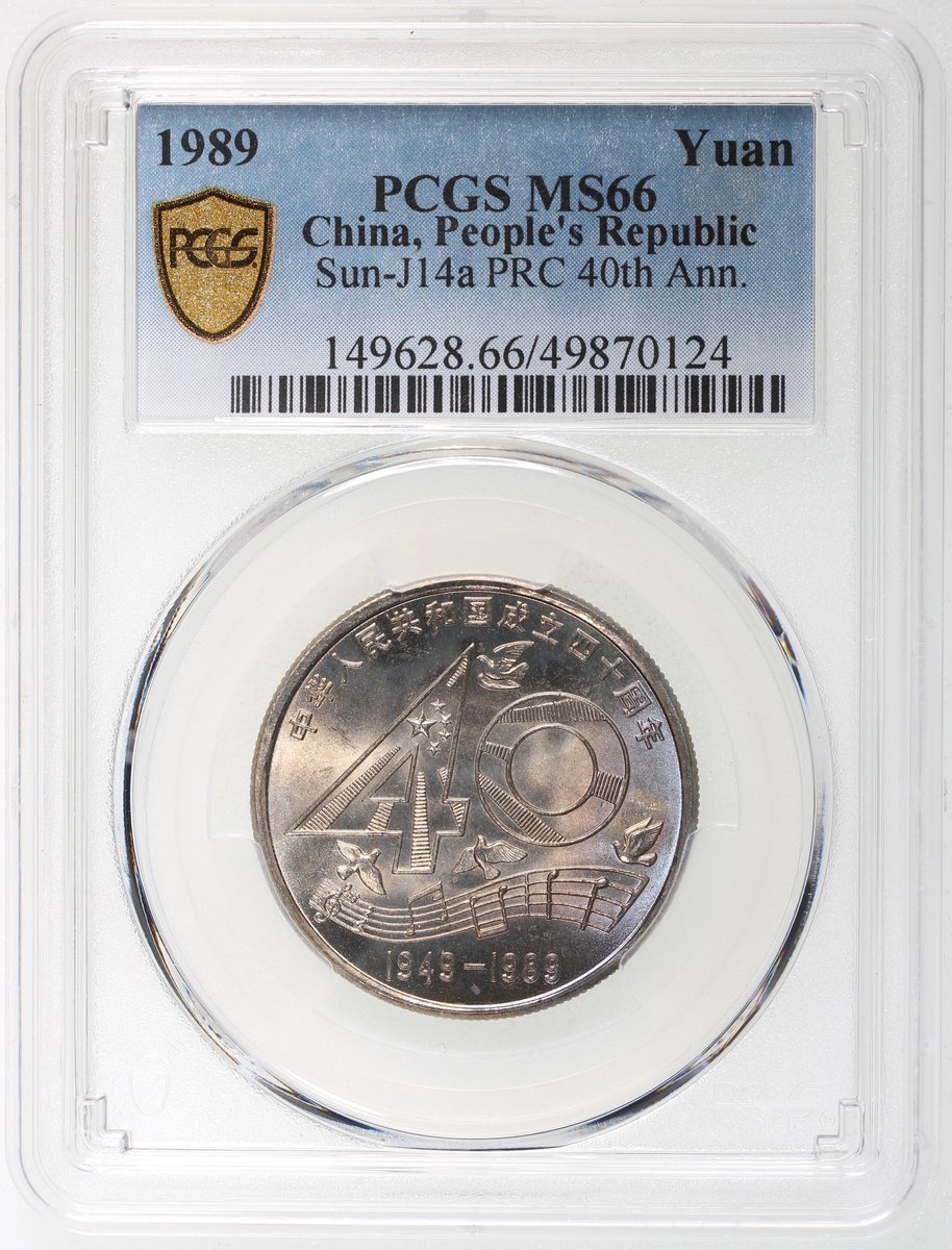 People's Republic of China, [PCGS MS66] copper nickel 1 yuan, 1989, 40th Anniversary of the People's Republic of China circulating commemorative coin, (Sun-J14a), Cert. #49870124, attractive multi-coloured toning