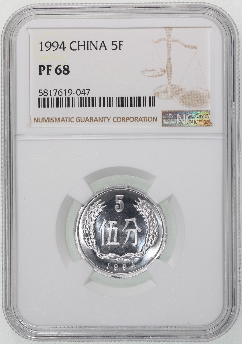 People's Republic of China, [NGC PF68] aluminium proof 5 fen, 1994, (KM-3), cert. #5817619-047