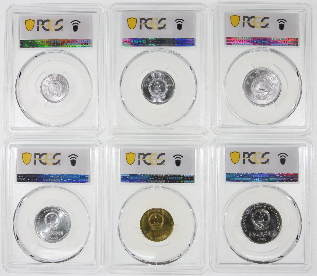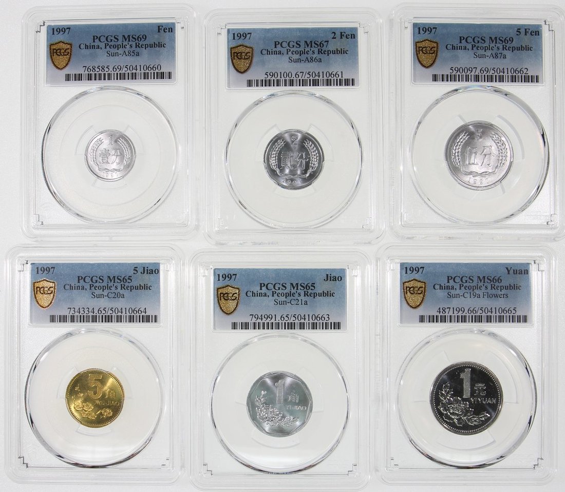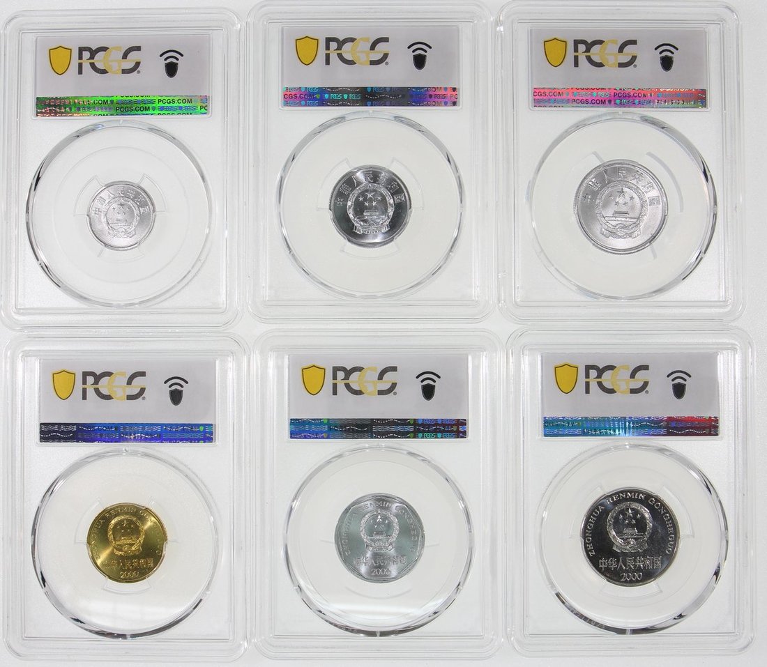 1997-2000中國流通套幣1組4套,包括1,2,5分,1,5角及1元,全部PCGS評級MS65及以上,歡迎參考圖片對照分數