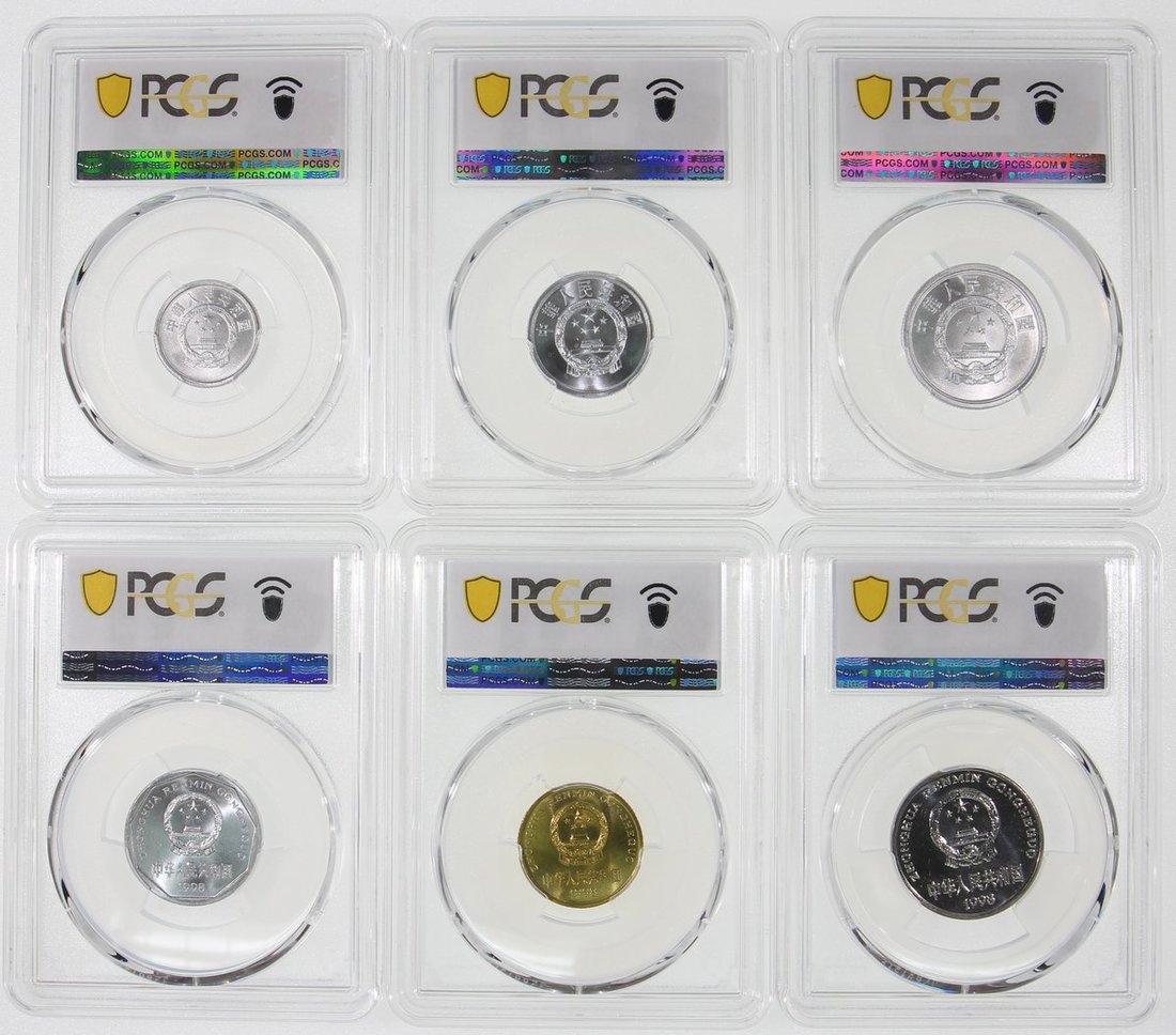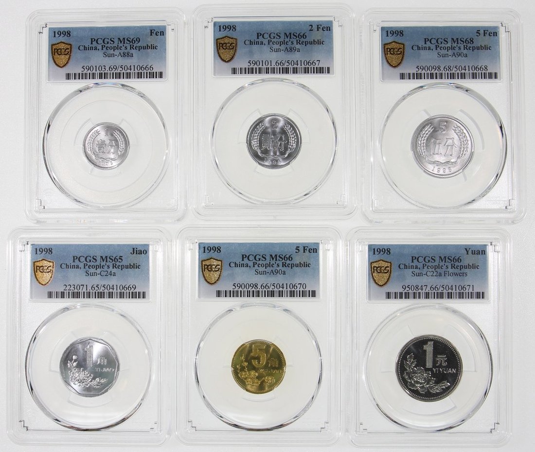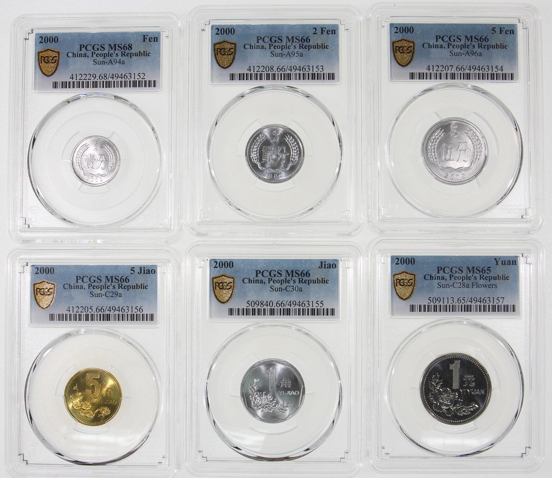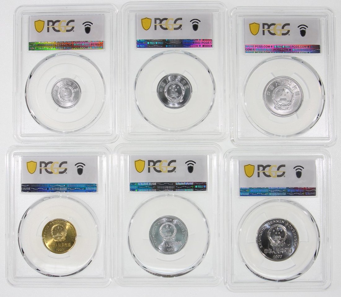 1997-2000中國流通套幣1組4套,包括1,2,5分,1,5角及1元,全部PCGS評級MS65及以上,歡迎參考圖片對照分數