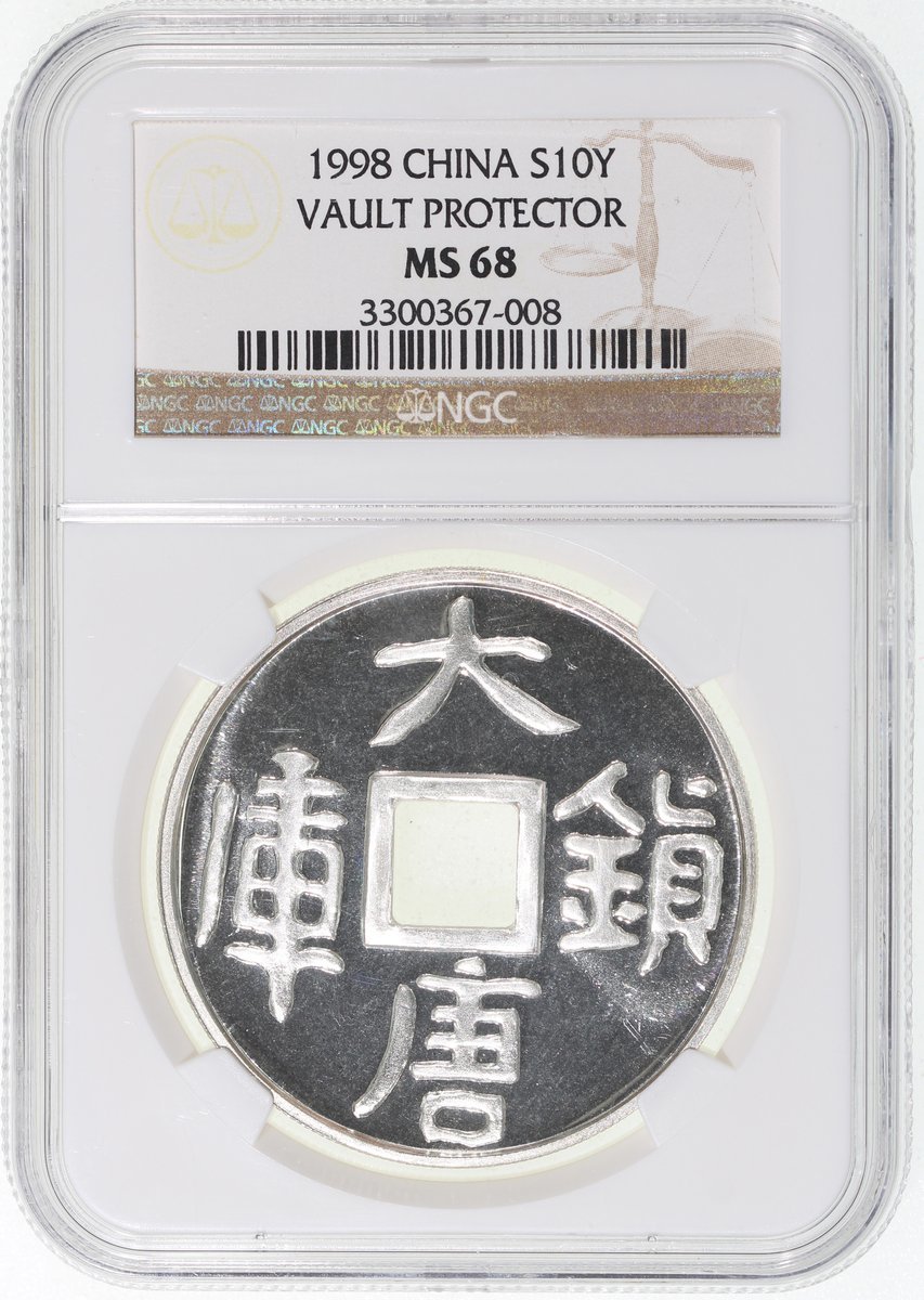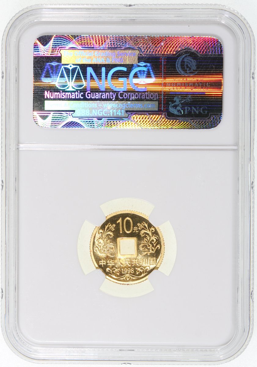 1998年中國大唐鎮庫金銀幣10元一組2枚,包括10元金幣1/10盎司,發行量60000枚,10元銀幣1盎司,發行量100000枚,分別評級為NGC MS69及 MS68,附證書