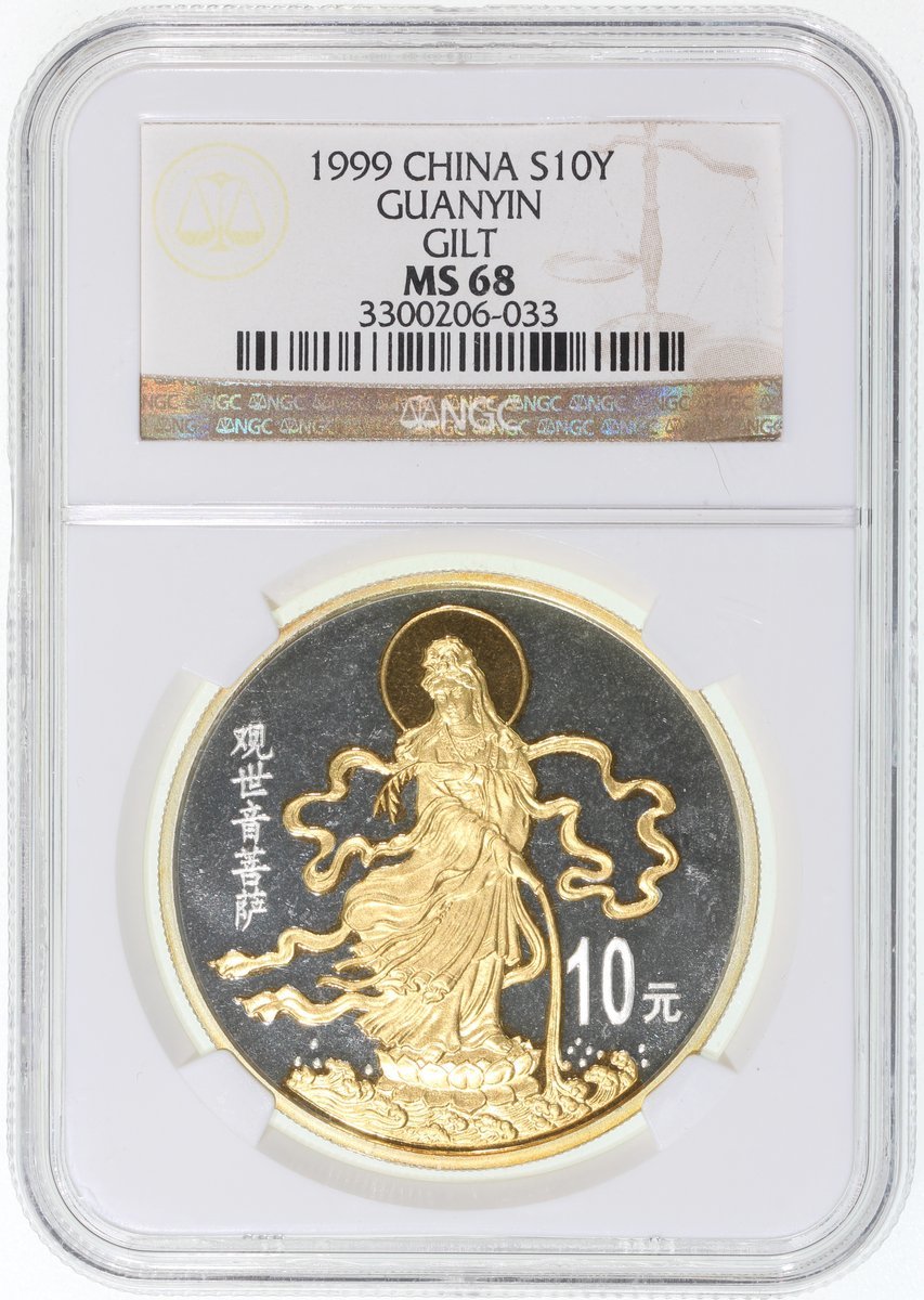 People's Republic of China, [NGC MS68] silver 10 yuan, 1999, 'Guanyin', mintage 99000,