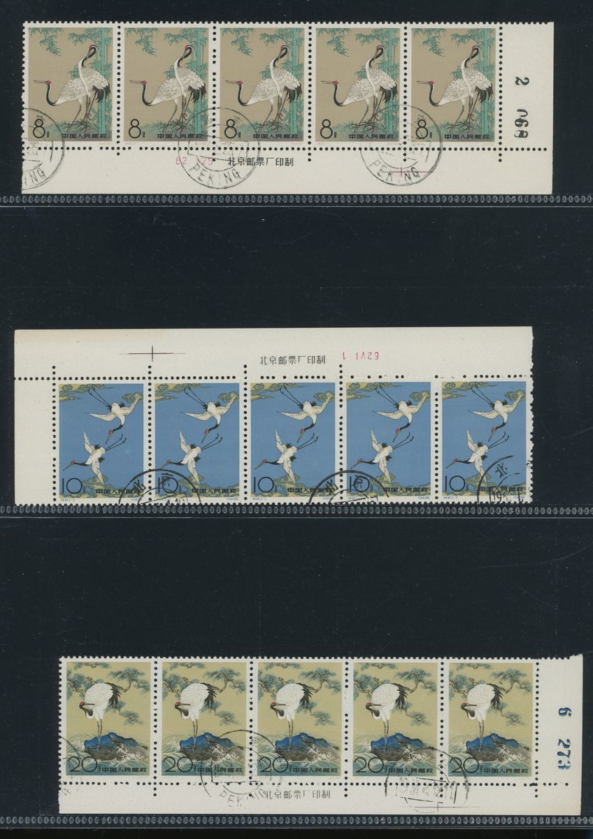 1962 (S48) Red Crowned Cranes complete set 3 in horizontal of 5, each value with imprint, CTO and minor toned gum. 8001000