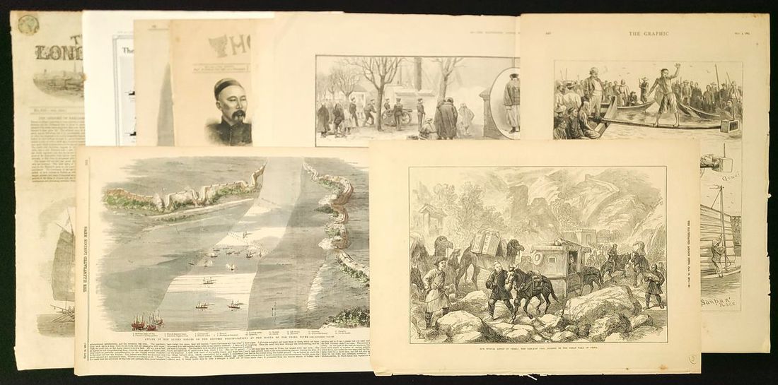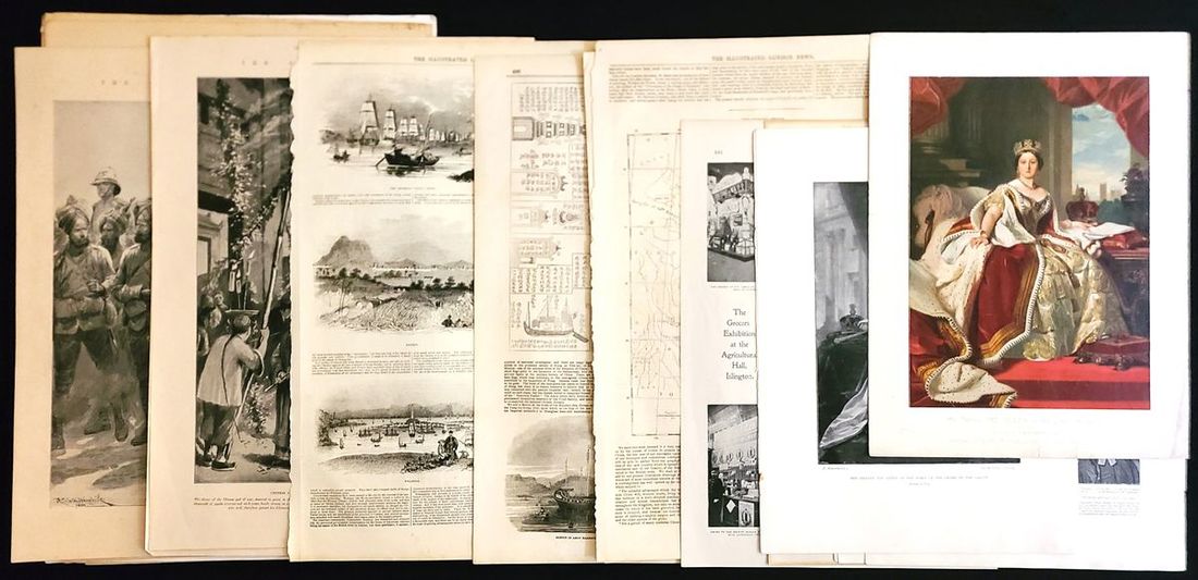 1840-1912年代英國 "The Illustrated London News"中有關中國及香港題材的插圖一批共25幅, 另加彩色石印及單色維多利亞女皇圖畫各一幅.