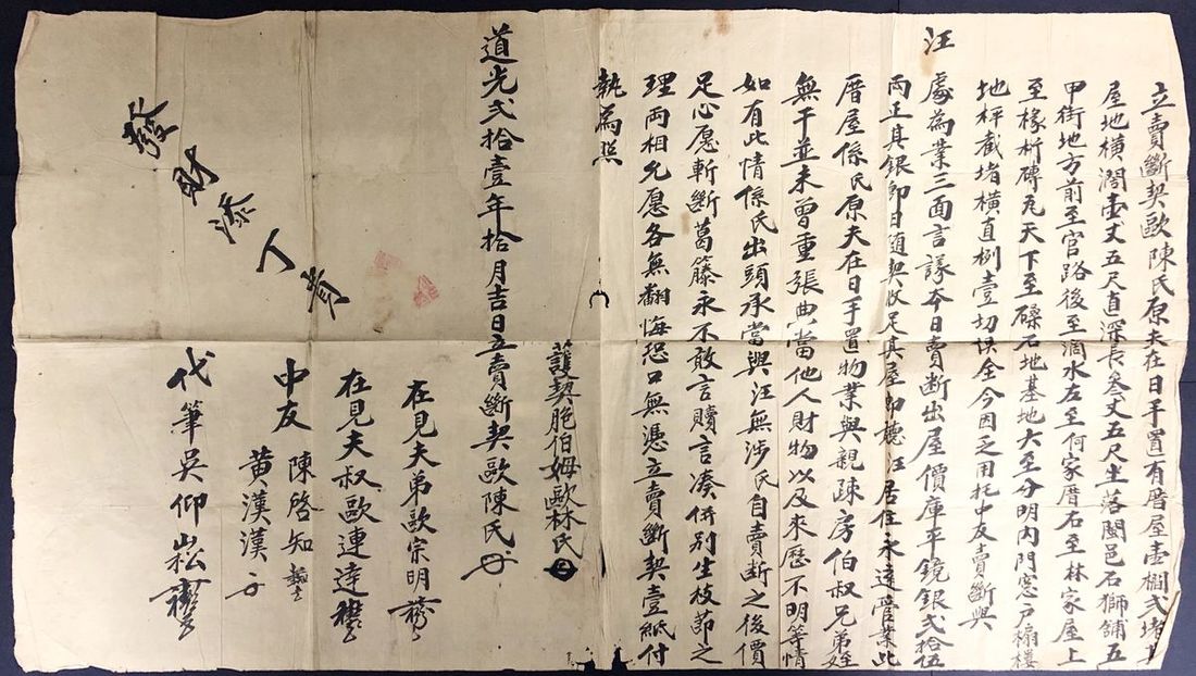 1841 a handwritten real estate deed from Shishi, Fujian.
