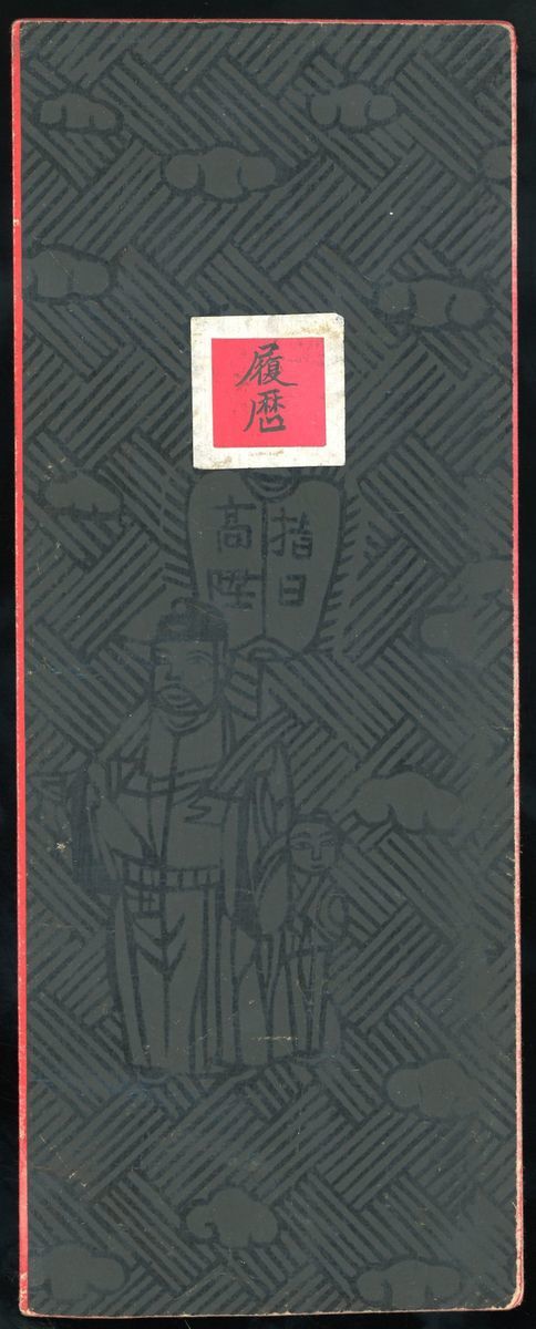 1875-1908 A folded military resume written by hand during the Guangxu period of the Qing Dynasty. The top and bottom are black with embossed figures. Inside is black ink writing on red paper, the small regular script is very neat. It is worth for collecting and appreciating. Size: 107x23cm