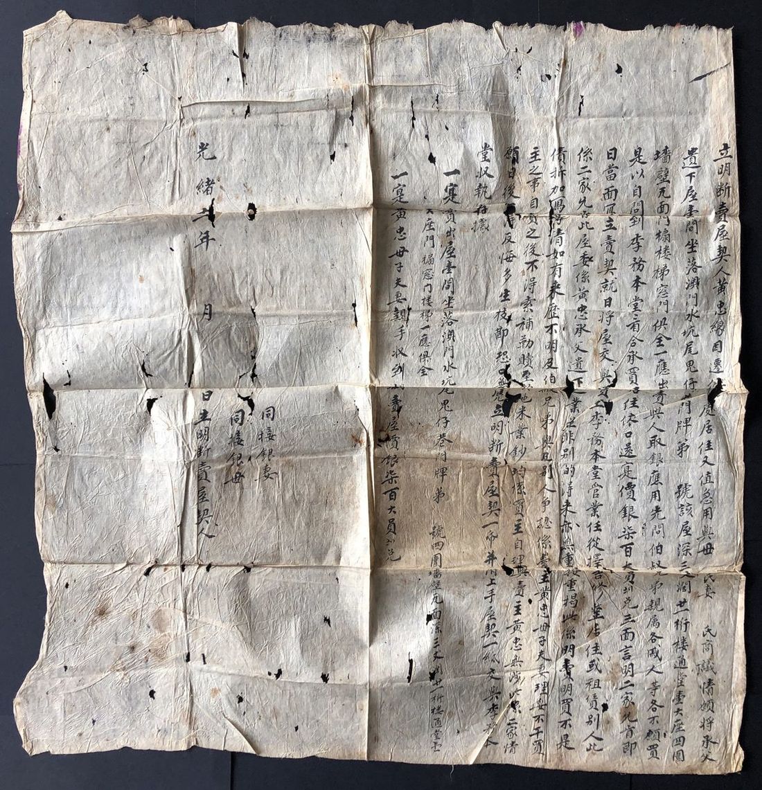 1885 a private deed for selling a house in Macau (without any official seal), the house is located in Guizai Lane, Shuikengwei. Although it is damaged, it is quite rare.