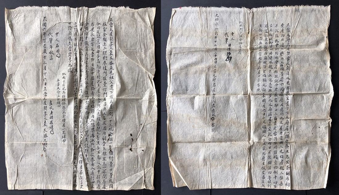 1906年 (光緒三十二年) 及1917年房屋典當私人契約各一份, 均為人手書寫. 沒有蓋上任何官府官印.
