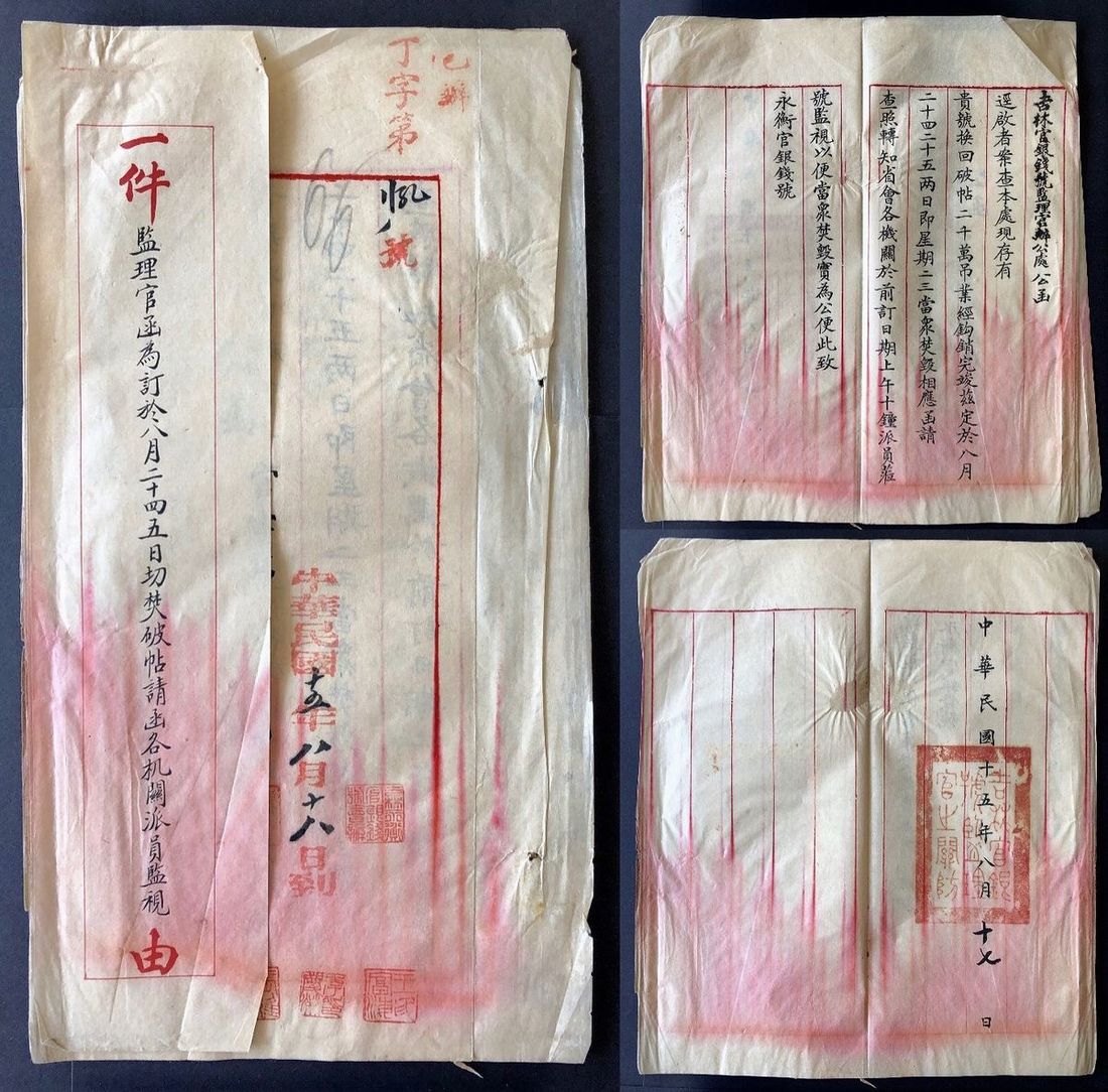 1926 a official letter for inviting the owner to watch the burning of the broken banknotes (worn banknotes). Issued by the Jilin Provincial Bank Supervisory Office.