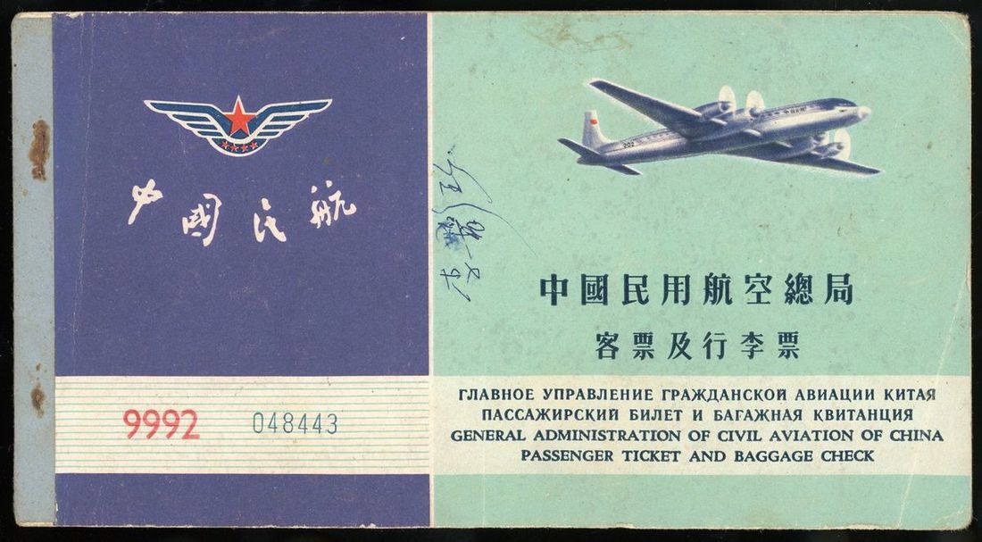 1967 a China Civil Aviation ticket from Myanmar to Guangzhou. China Civil Aviation tickets from the early days of the Cultural Revolution were rare.