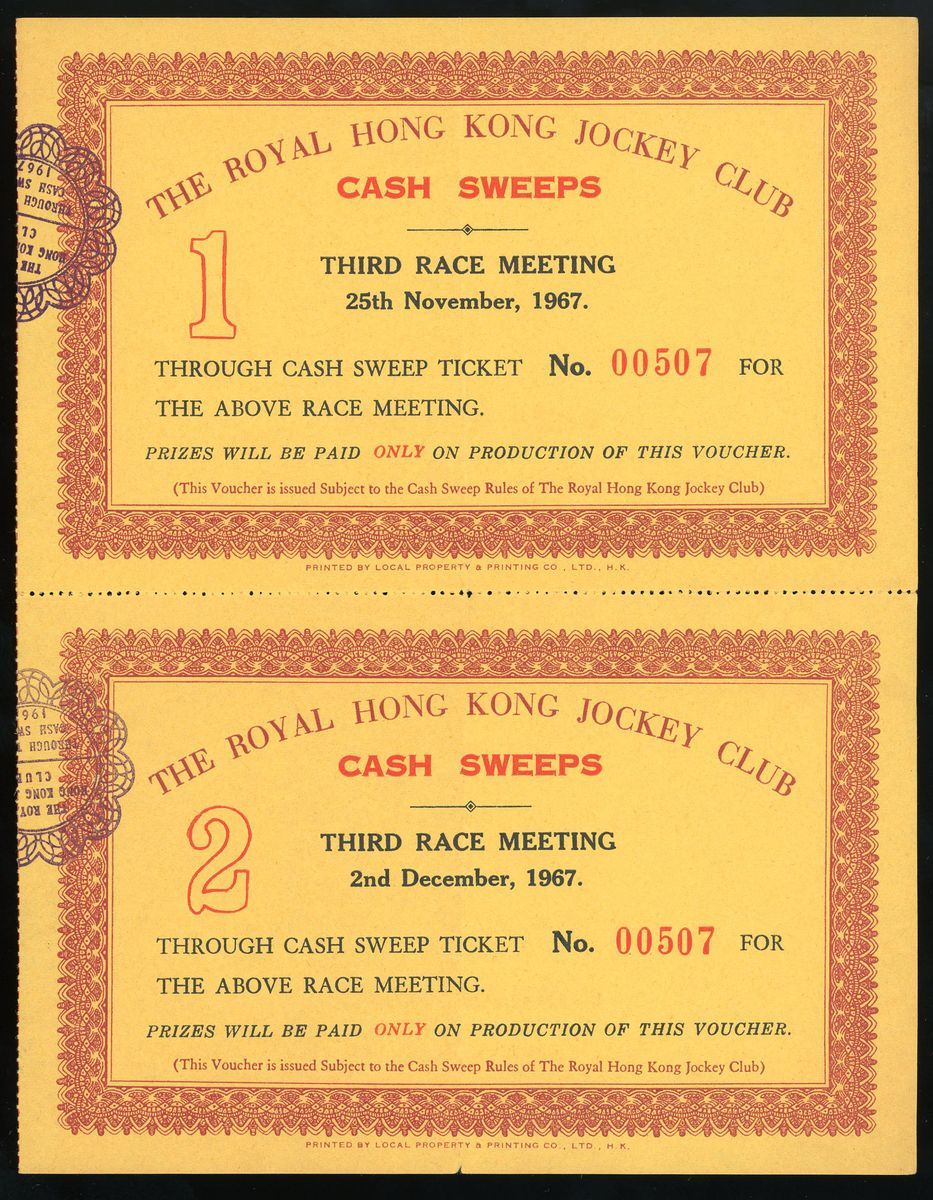 1967 The Royal Hong Kong Jockey Club Cash Sweeps in a set of two. No. 00507.