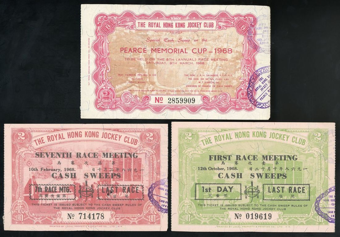 1968 there are six Royal Hong Kong Jockey Club lottery tickets. They are divided into February, March and October events.