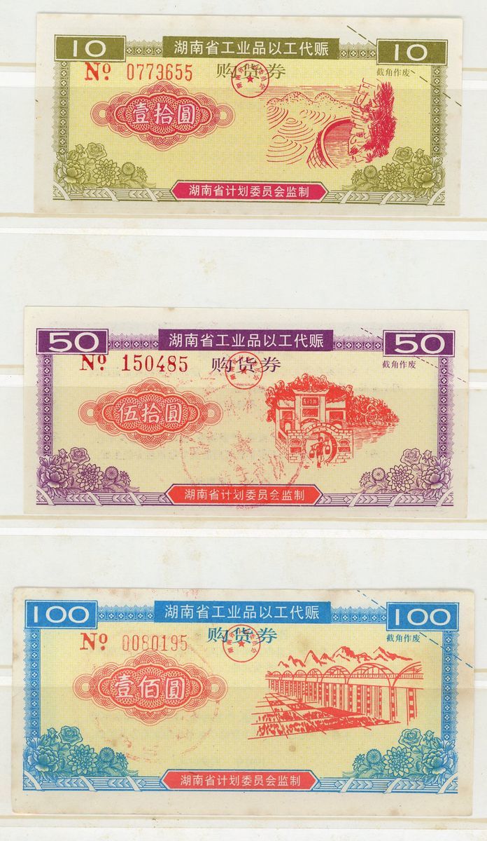 1990年代中國各省以工代賑購貨券共一百枚, 保存尚佳. 註: 所謂以工代購券是指由中國各省政府投資基礎設施工程,受賑濟者參加工程建設得到勞動報酬, 以此取代直接救濟的一種扶持政策的票券.