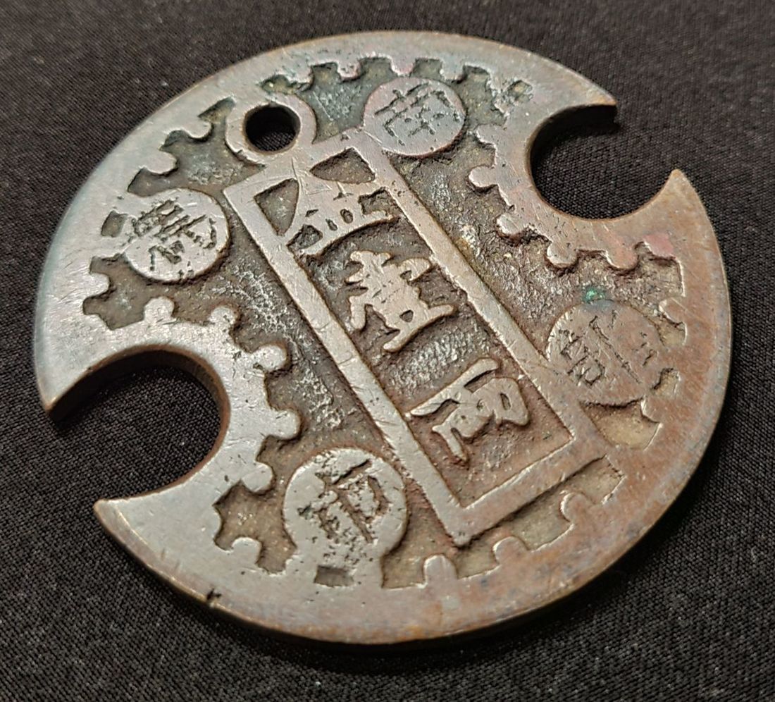 1786 an Japanese old bronze coin. with "South Horse Market" and "Kin Ichi ryou" on top, Diameter: 6.5cm.