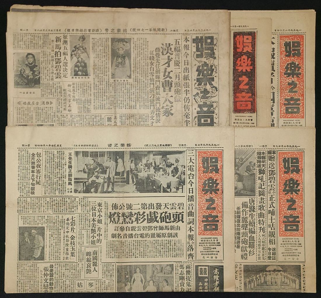 1952年-1959年少見"娛樂之音" 日報五份. 娛樂之音以報導粵劇消息為主, 副刊有小說及體育新聞.