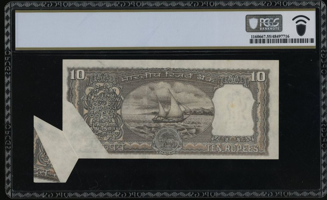 1985-90年印度10盧比錯體,編號 B25 787541,PCGS 55,福耳錯體