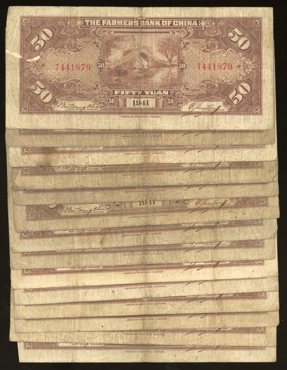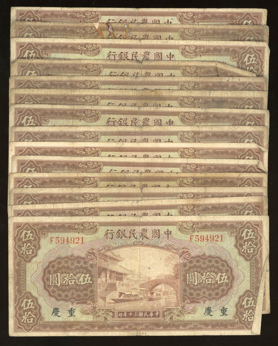 Farmers Bank of China, 50 yuan (14), Year 30 (1941), ChungKing, (Pick 476), generally fine to very fine (14) From the descendant of an Overseas Chinese merchant Family.