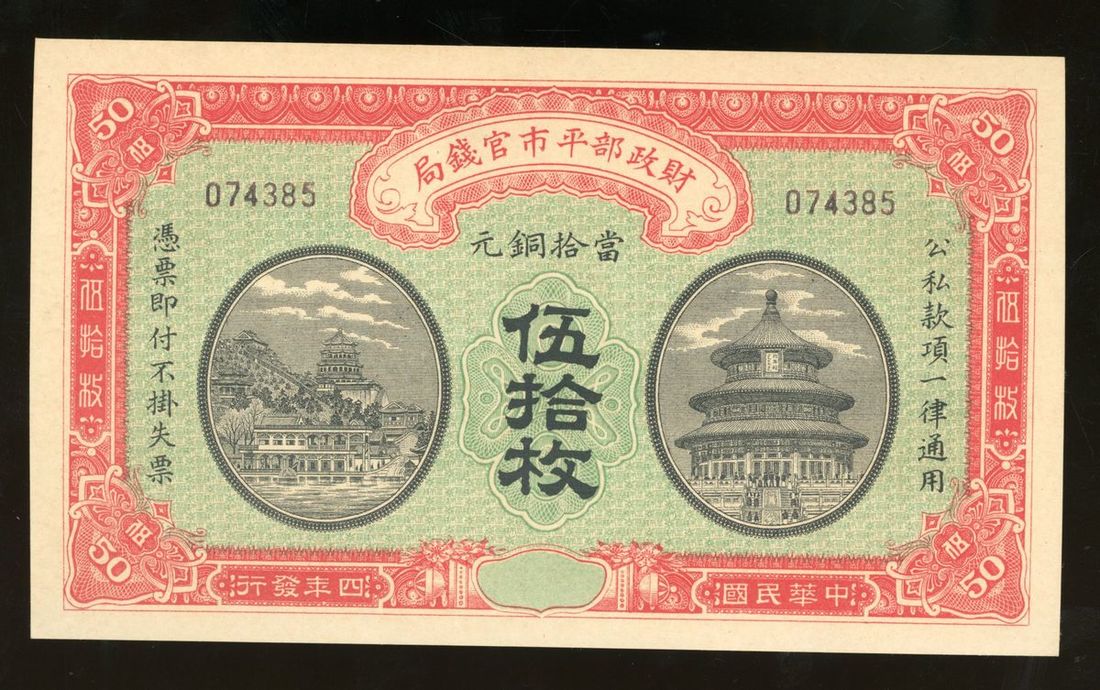 Market Stabilization Monetary Bureau, China, 50 copper coins, Year 4 (1915), serial number 074385, (Pick 602), uncirculated